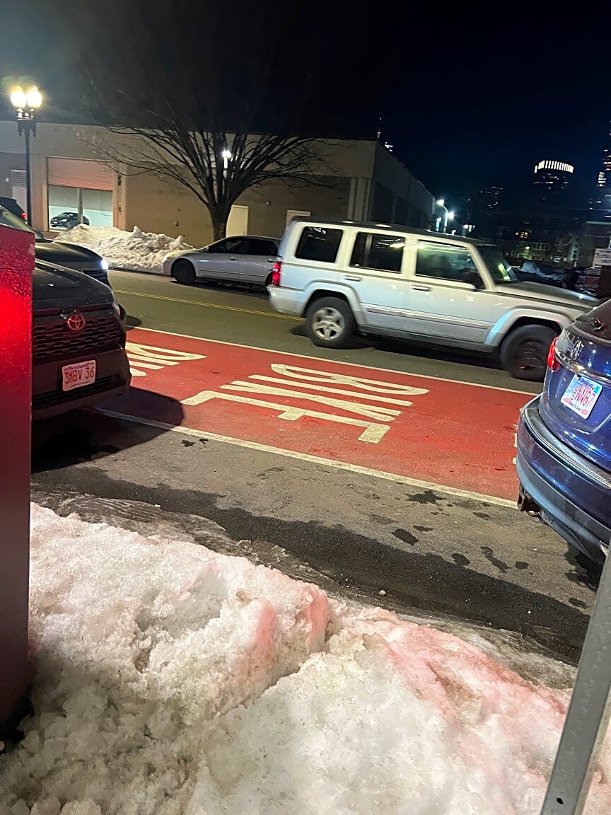 24 Traveler St, Roxbury, Ma, 02118Double parked in bus lane! At Otto!!Both sides of Washington St