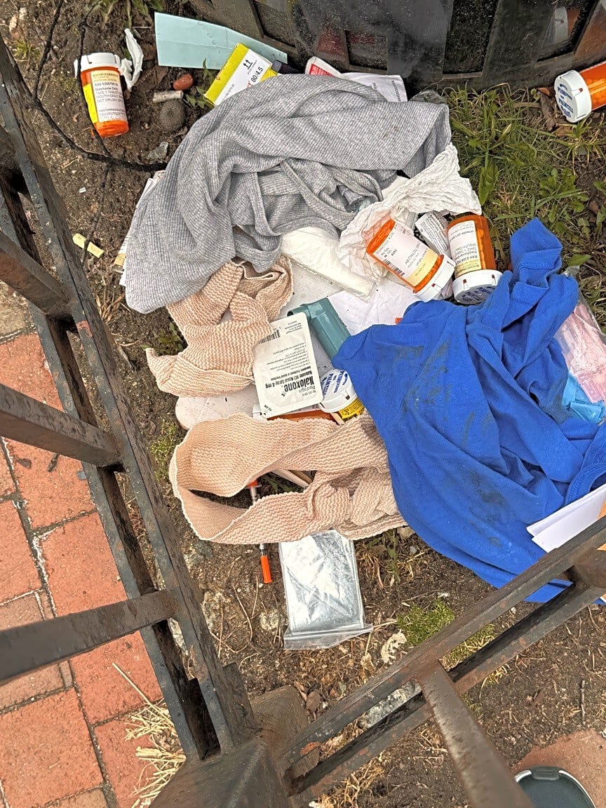 Intersection Of Massachusetts Ave And Chester Park, Roxbury, MaNeedles and Bottles of prescription drugs