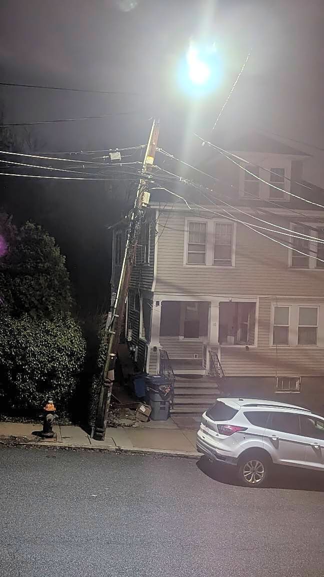 10 Pleasant Hill Ave, Dorchester, Ma, 02124The utility pole outside 10 Pleasant Hill Ave in Mattapan isn't fairing well in the wind tonight. Not only has it developed a significant bend, the fixture that attaches the streetlight to the pole is swaying heavily and I can't imagine they are supposed to do that. If someone could check on the integrity of this structure it would a lot of neighbors at ease