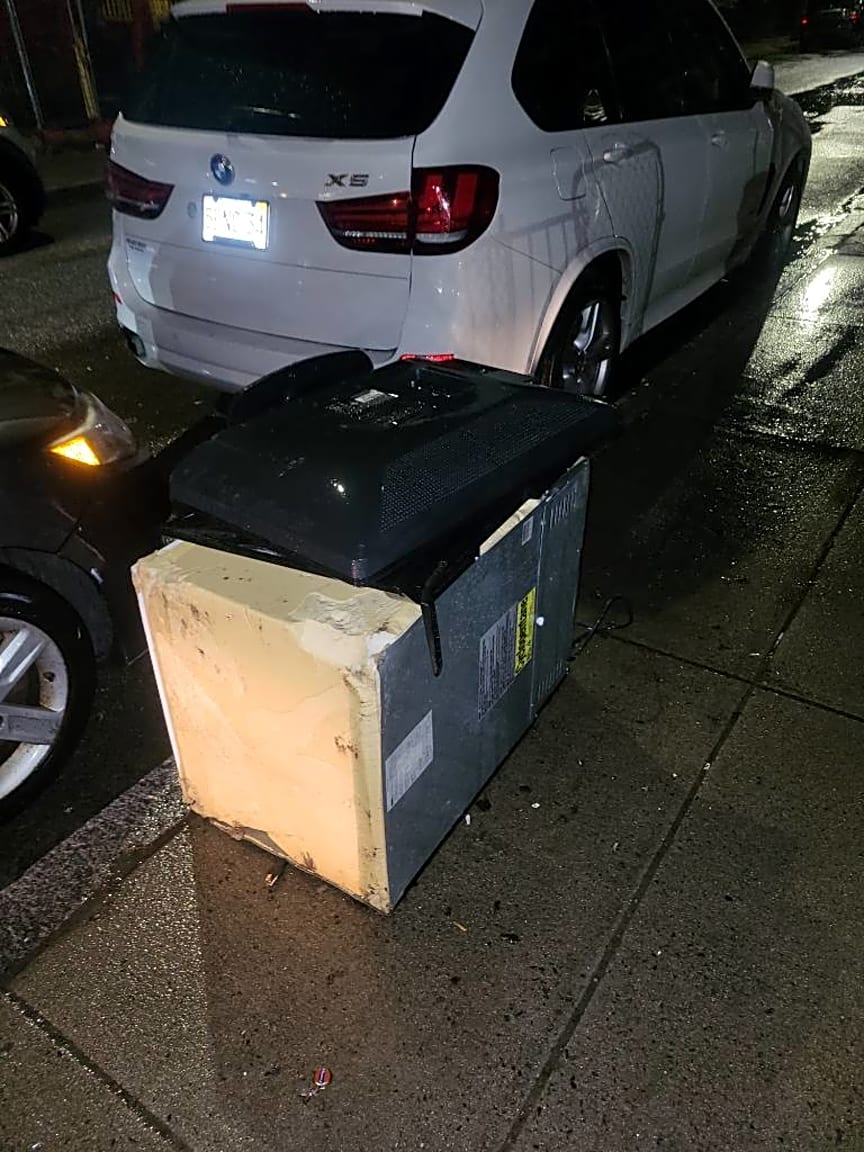 CLOSED #101006571734Noted. 1 small refrigerator and a small TV illegally dumped on the sidewalk on the side of the property, no evidence leading to who placed it there and no citation was issued at this time and was sent to dpw for removal.