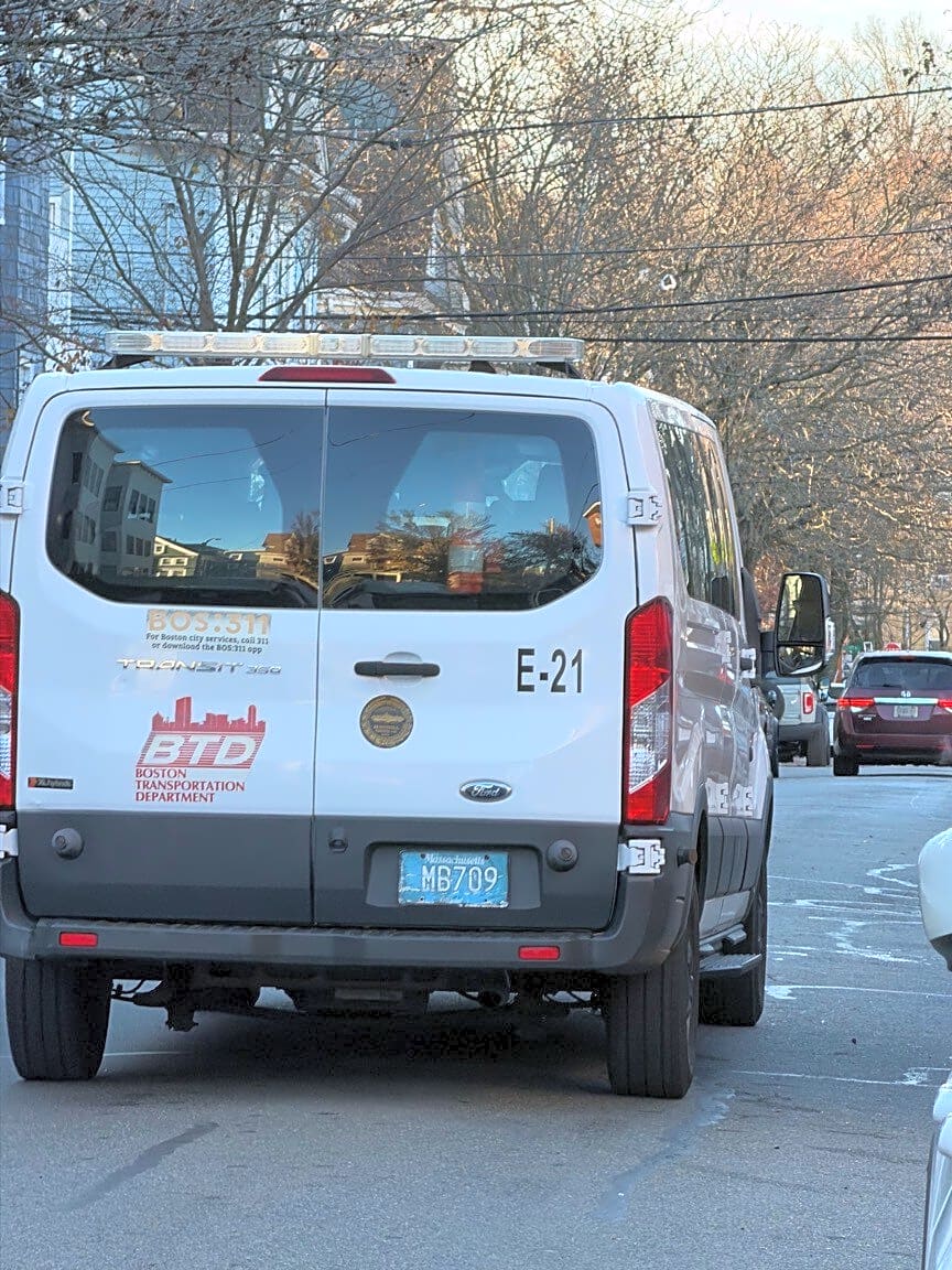 Intersection Of Bakersfield St And Hinckley St, Dorchester, MaBoston transportion official is literally smoking a huge ass cigar and cannot drive car or inspect as he’s managing to SMOKE IN CITY VEHICLE