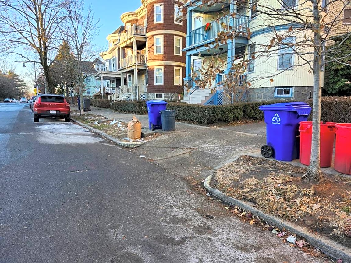 35 Greycliff Rd, Brighton, Ma, 02135Overflowing trash in front yard of house