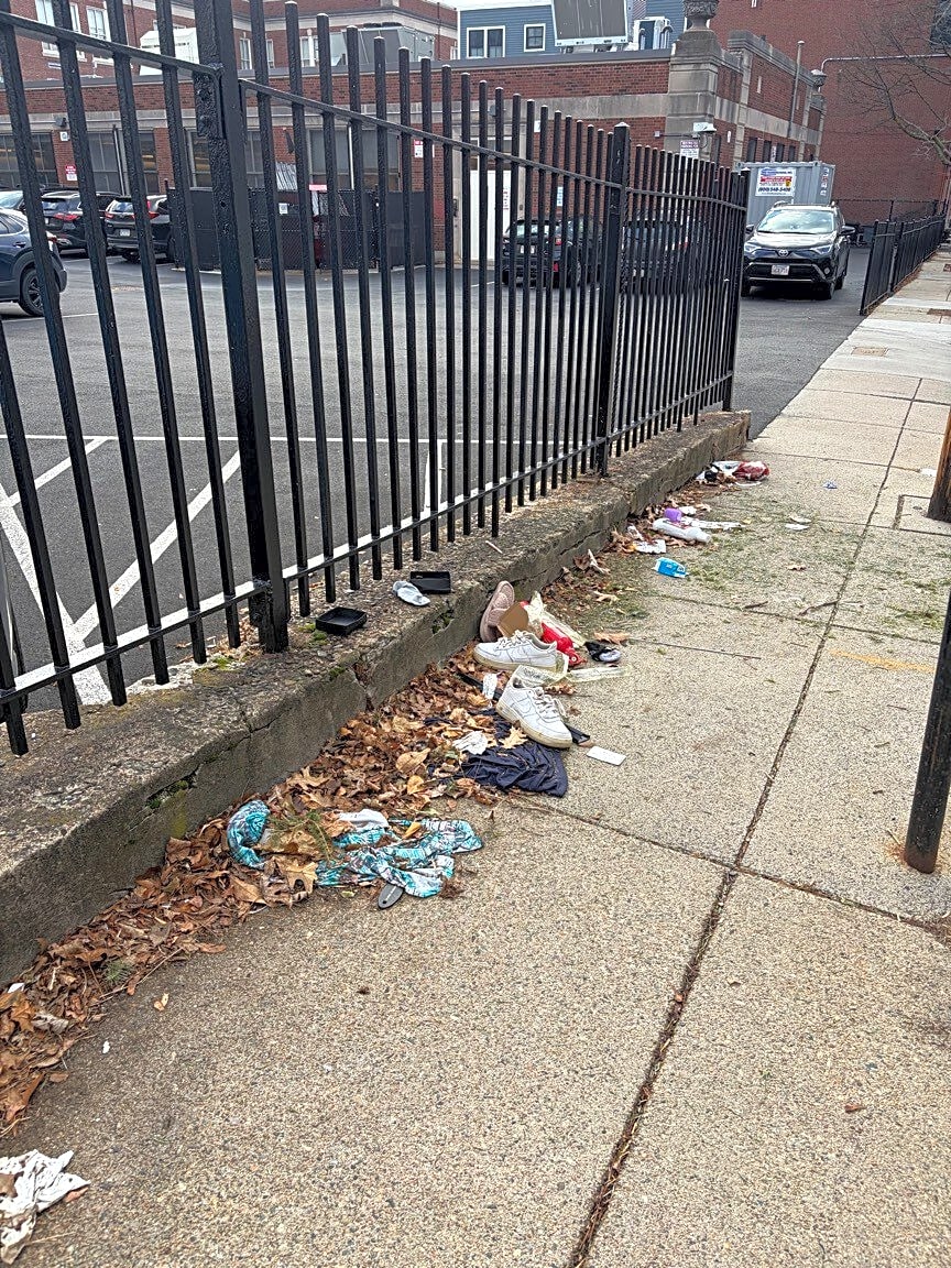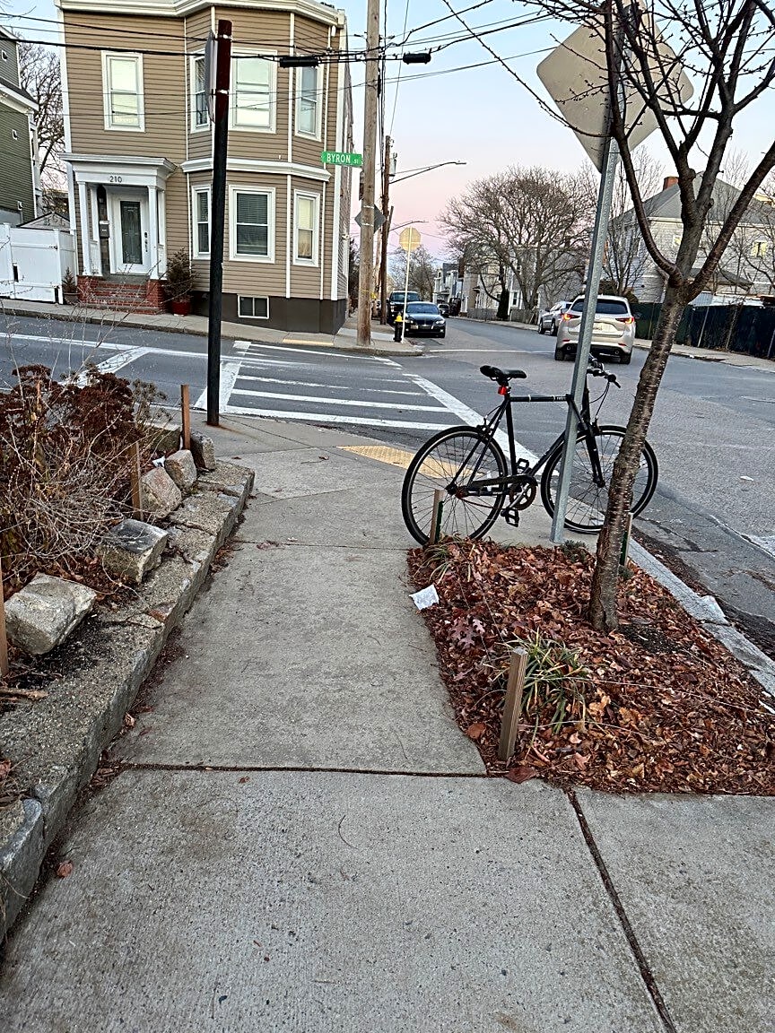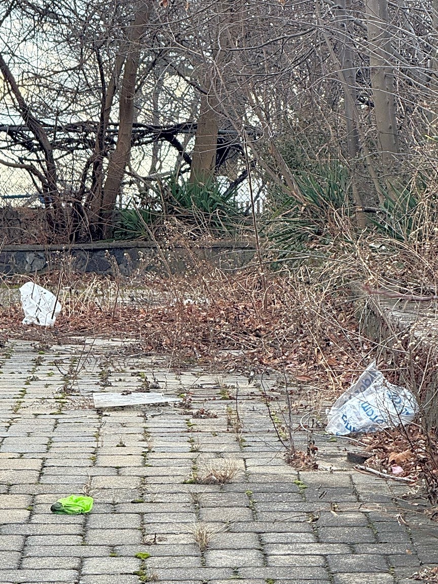 Intersection Of Ringgold St And Waltham St, Roxbury, MaTrash bag and trees next to Ringgold Park