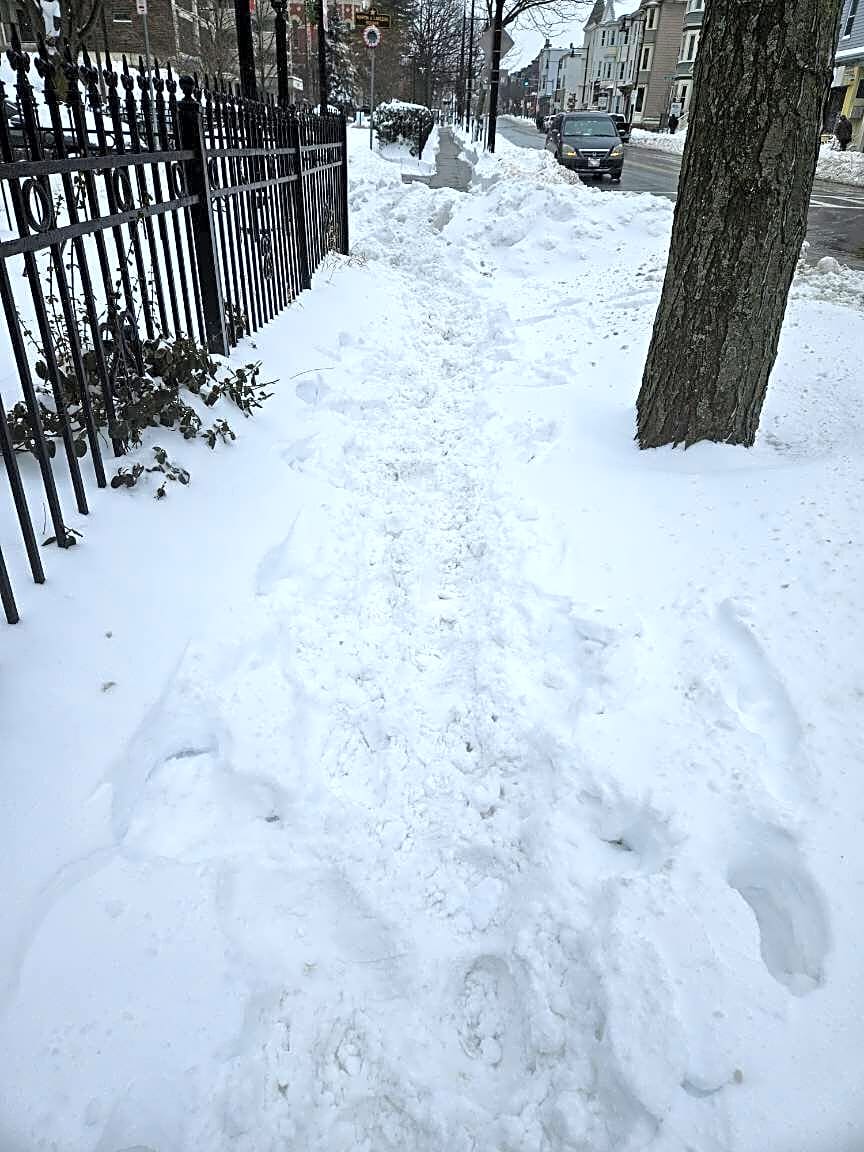 Intersection Of Cushing Ave And Sawyer Ave, Dorchester, MaCity plows pushed snow onto the sidewalk. Please have the sidewalk cleared.