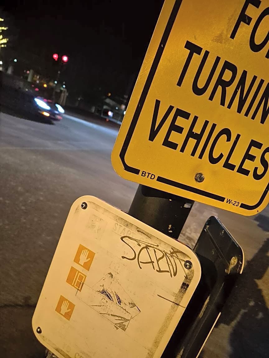 Intersection Of Woodlawn St And Hyde Park Ave, Jamaica Plain, Mamotor bike chained to sign and fell over blocking sidewalk on woodlawn st