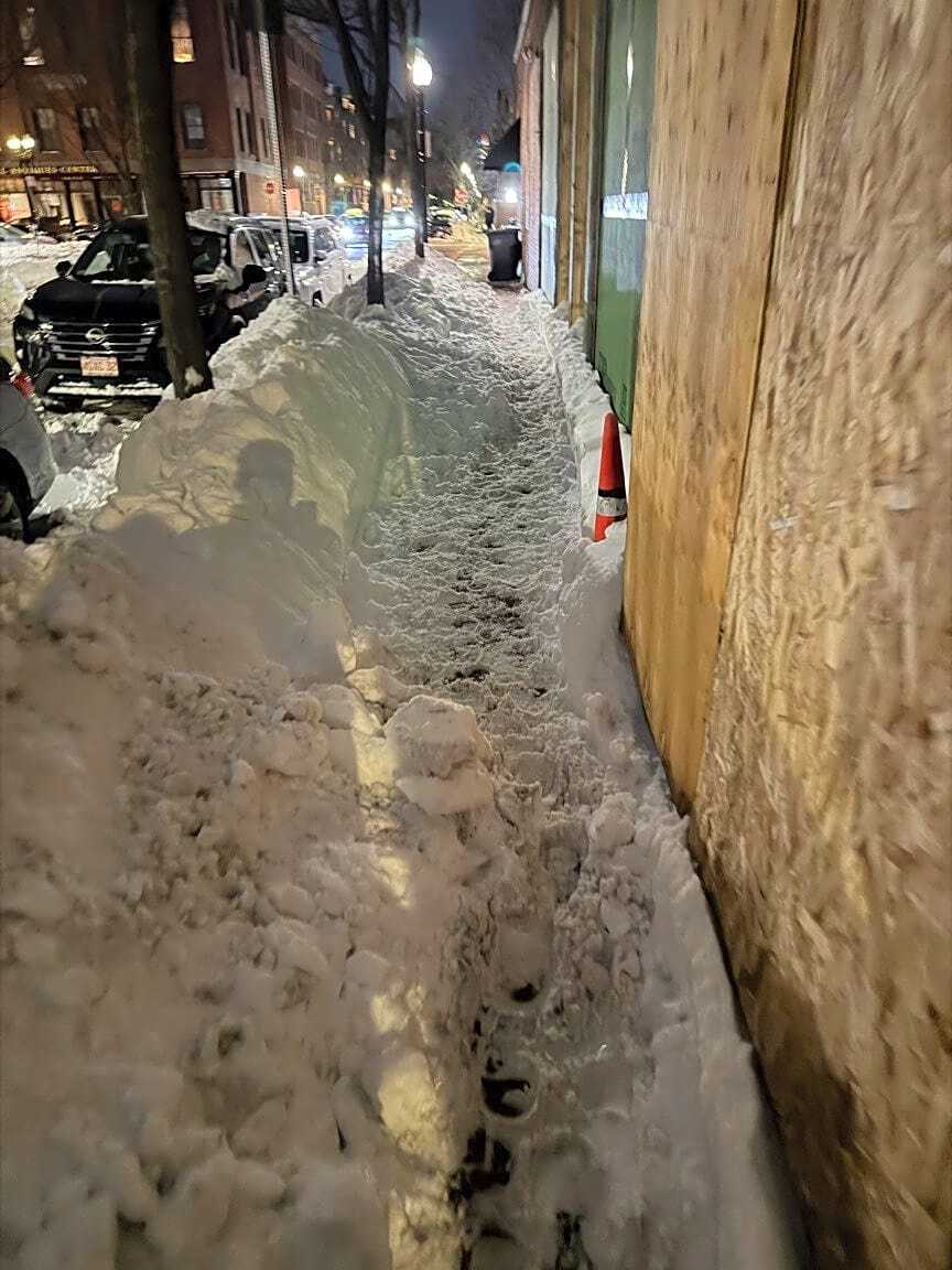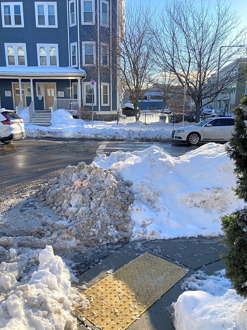 Intersection Of Kempton St And Fenwood Rd, Boston, MaCrosswalk not shoveled adequately