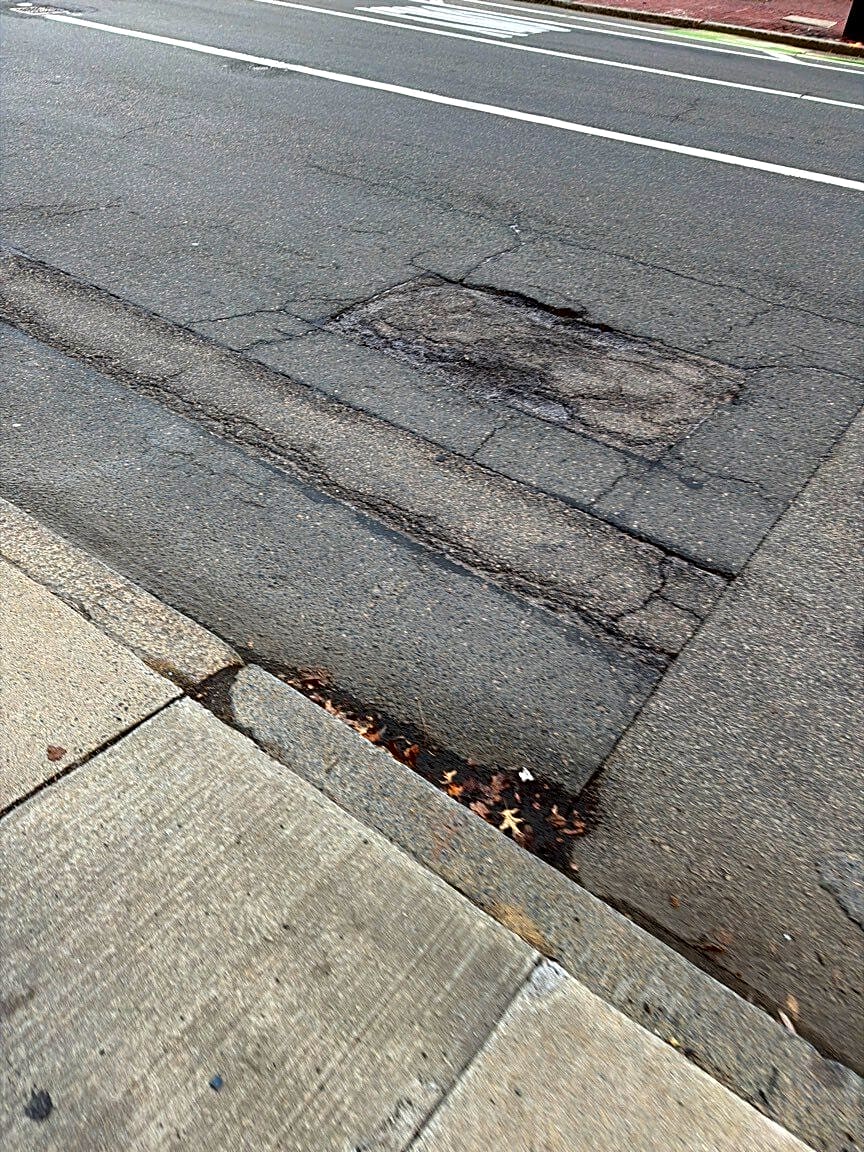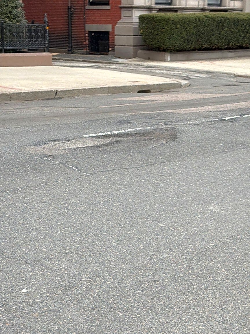 Intersection Of Maywood St And Warren St, Roxbury, MaBig pothole on Warren Street