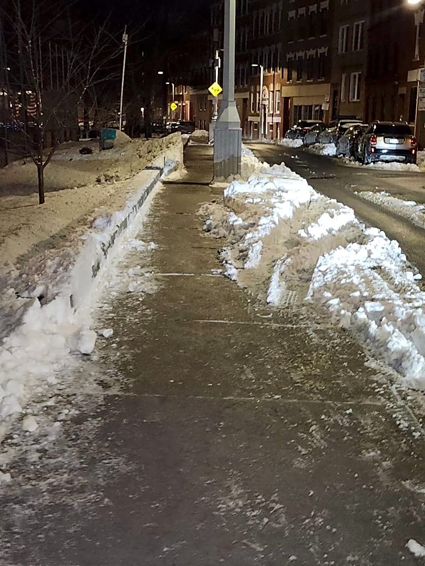 Intersection Of La Fayette Ave And Prince St, Boston, MaPrince street sidewalks are a disaster! Especially down near the Gassy Park and parking lots . Kids walk this sidewalk to school and nothing is shoveled anywhere.