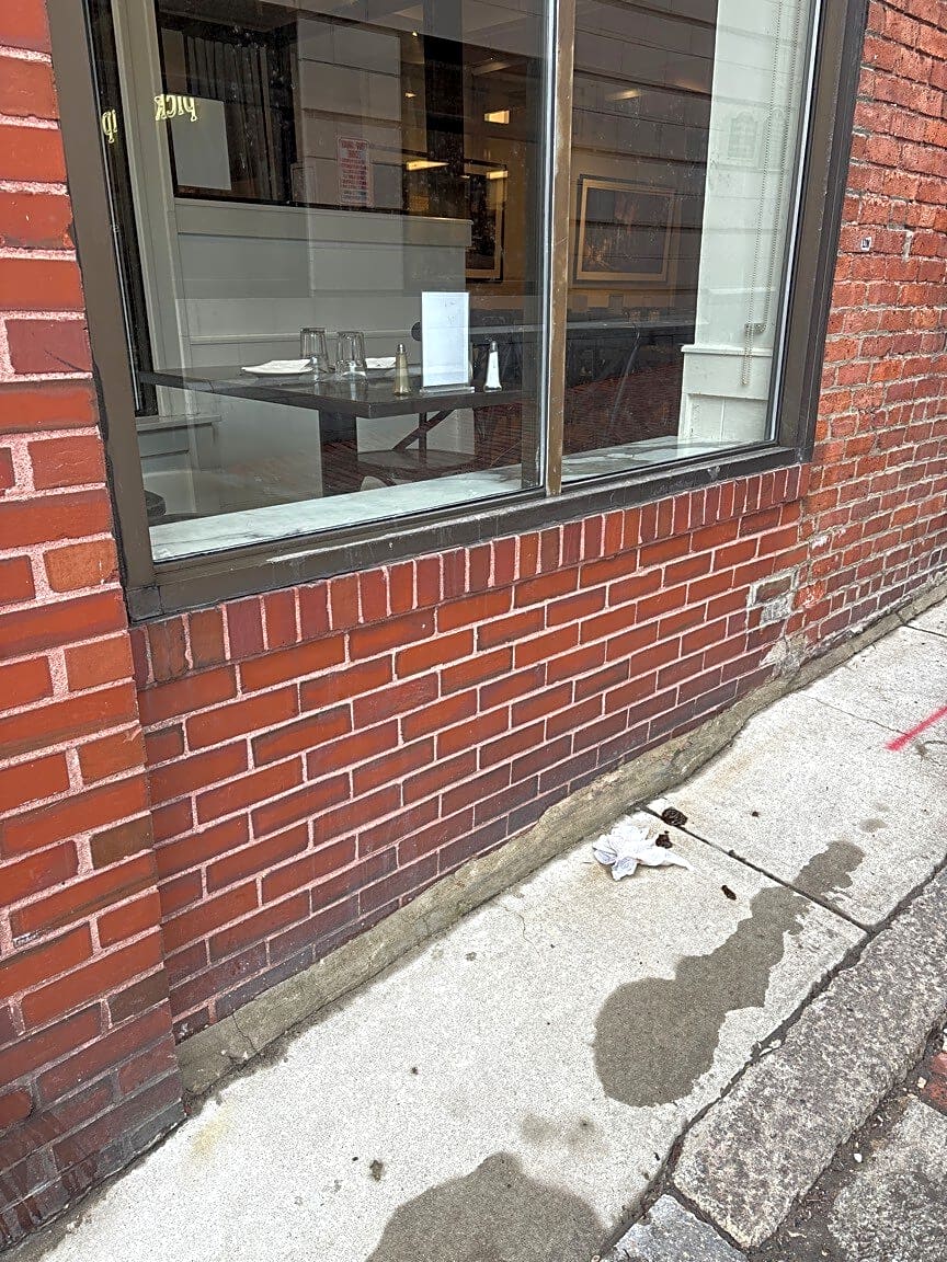 Intersection Of Strong Pl And Cambridge St, Boston, MaPoo and paper outside the window of Antonio’s on Strong Pl