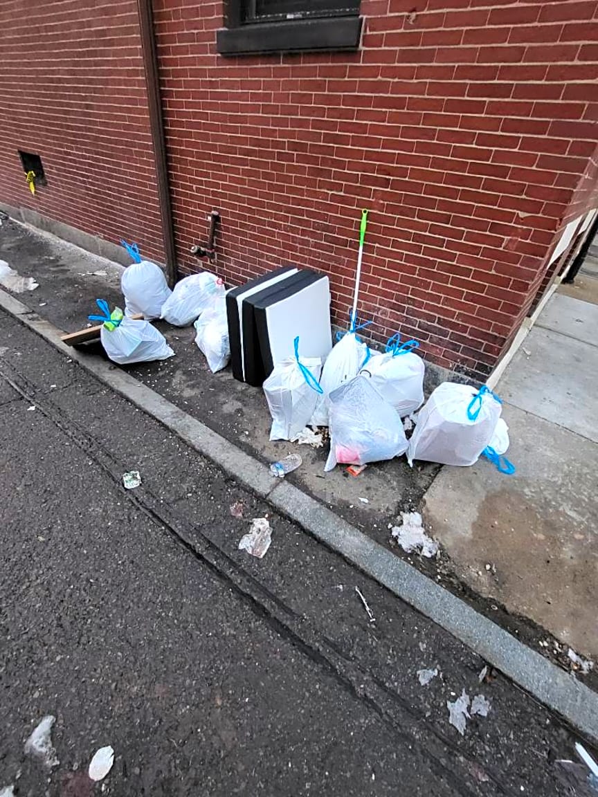 37 Worcester Sq, Roxbury, Ma, 02118Trash out not on trash day infront of 39 Worcester day before a massive snow storm