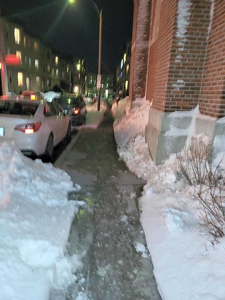 5 Saint Lukes Rd, Allston, Ma, 02134sidewalk not cleared fully along brighton avenue, there is only an extremely narrow path wide enough for one person to walk, nowhere near 42 inches. impossible for me in a wheelchair to pass