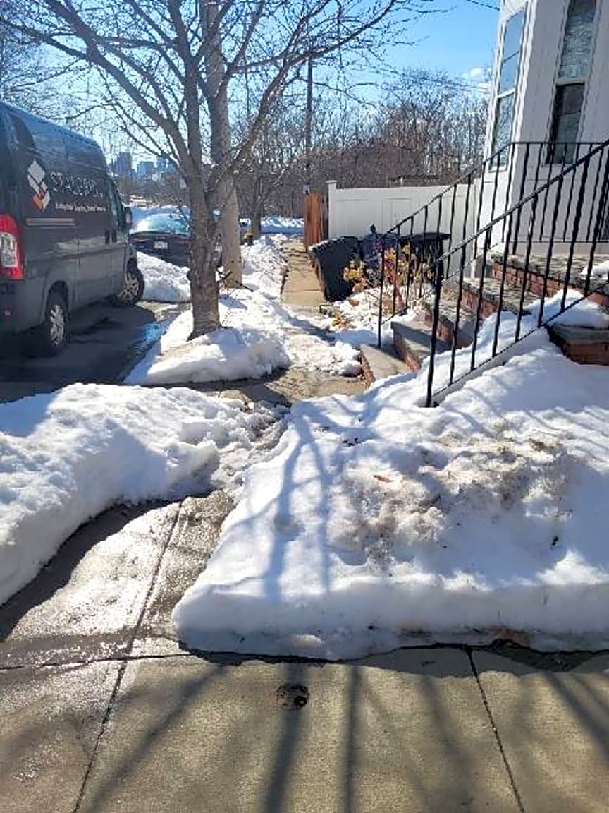 CLOSED #101006549750Noted. A citation was issued at this location for the failure to remove snow and or ice from the sidewalk infront of the property.