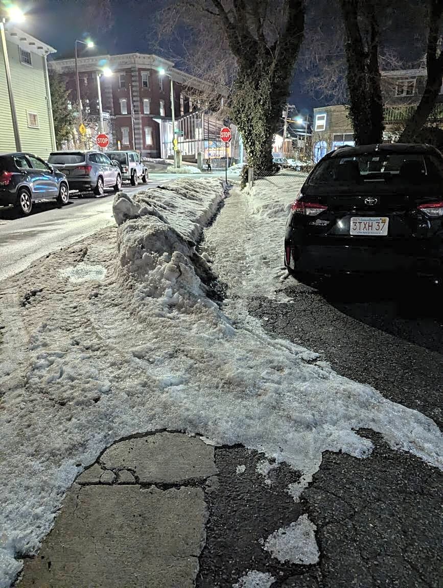 41 Ballard St, Jamaica Plain, Ma, 02130Unshoveled sidewalk on Ballard