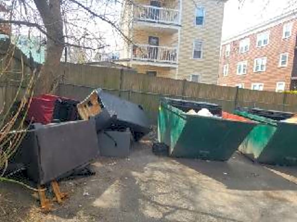 160 Williams St, Jamaica Plain, Ma, 02130Rubbish is placed out in unsuitable container | Details: [Constituent states in the back there is a pile of furniture and other trash.] Exact location: [rear]