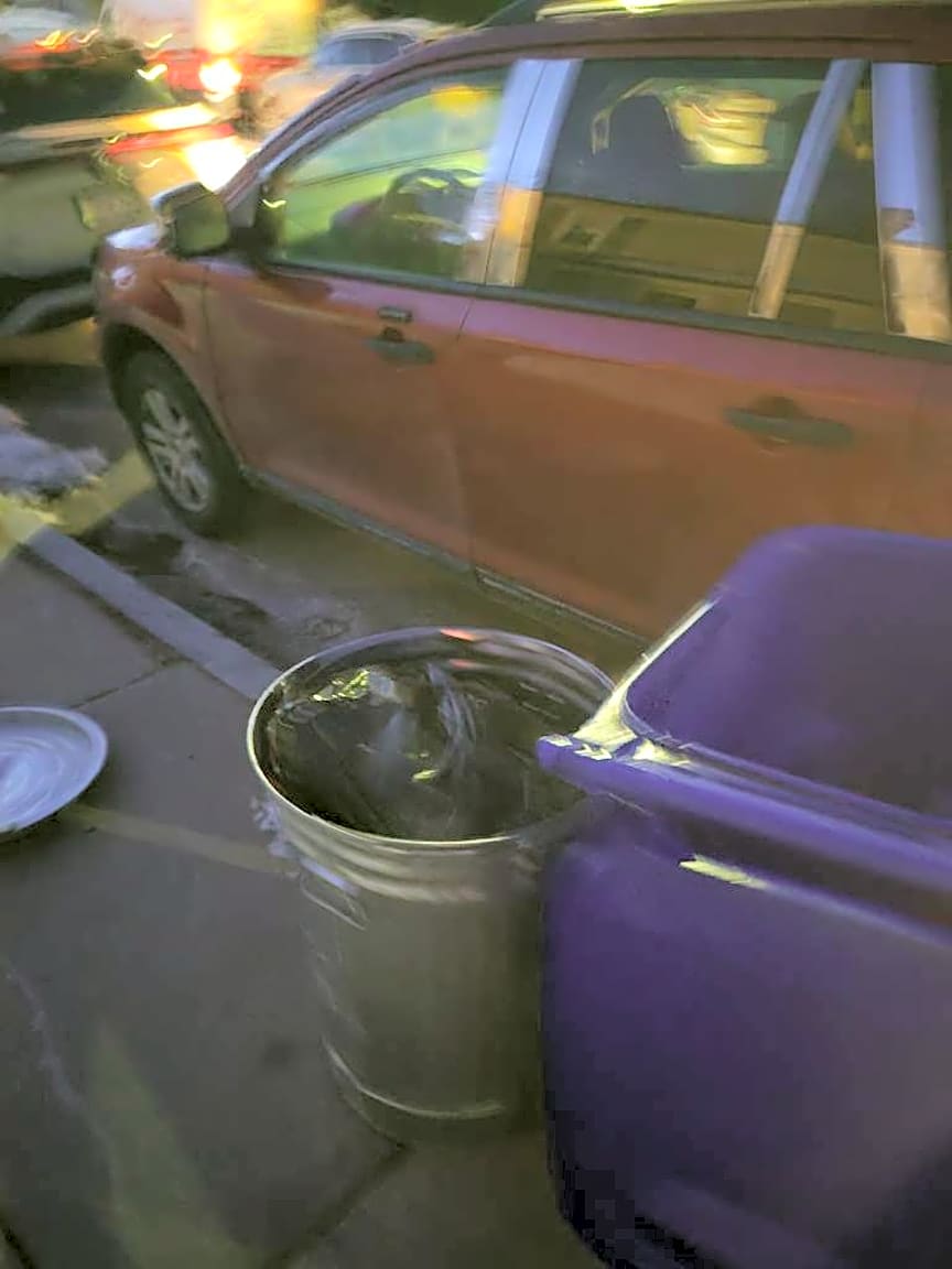 CLOSED #101006505238Resolved. Pick up one trash barrel on curb. 2/13/26.