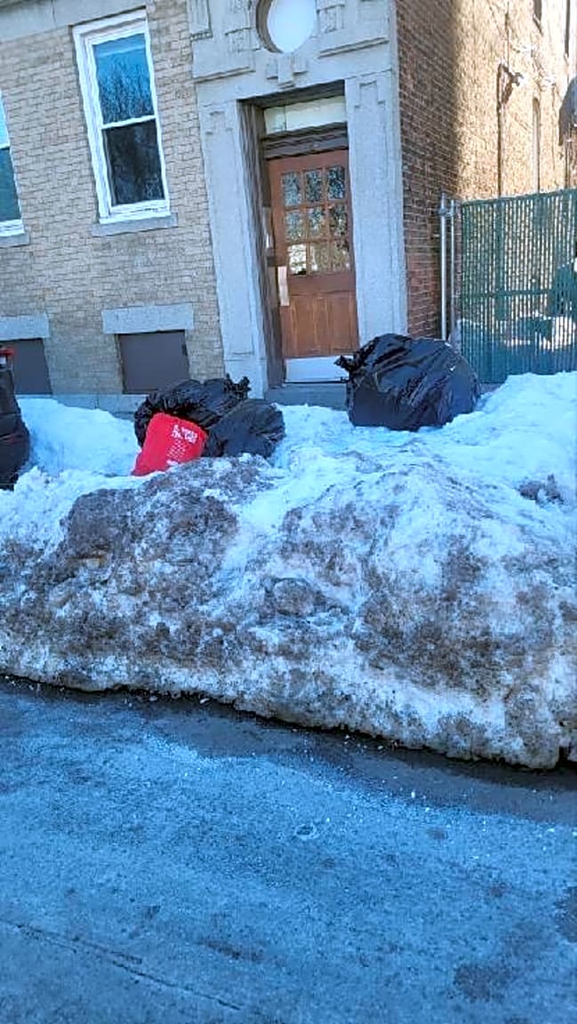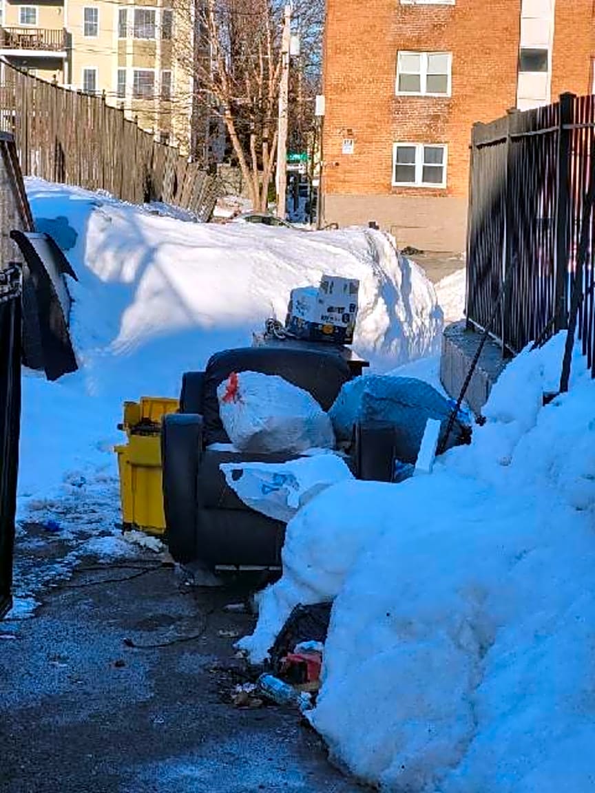 113 Orleans St, East Boston, Ma, 02128Residential trash in snowbank