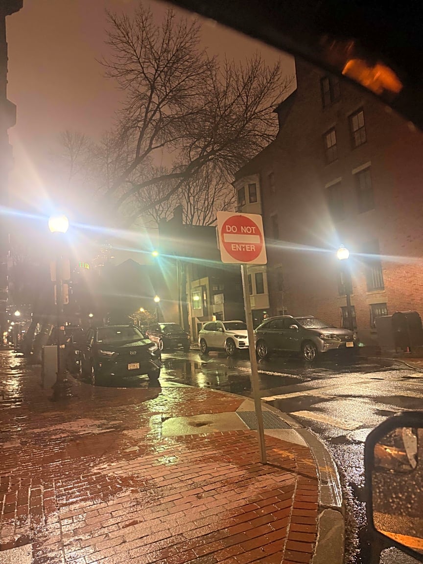 19 North Sq, Boston, Ma, 02113How is the car parked illegally: [Double parked] Make: [Volvo] Model: [4DR] Color: [Blue] Vehicle License Plate Registration: [248kbt]