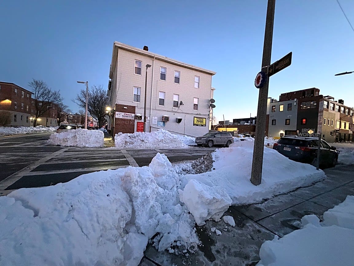 Intersection Of Gold St And A St, South Boston, MaSidewalk not shoveled Mass Bat Credit Union A St