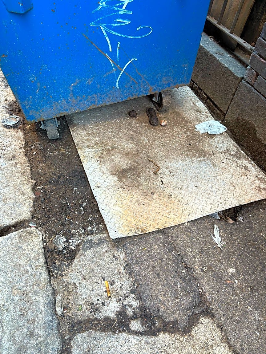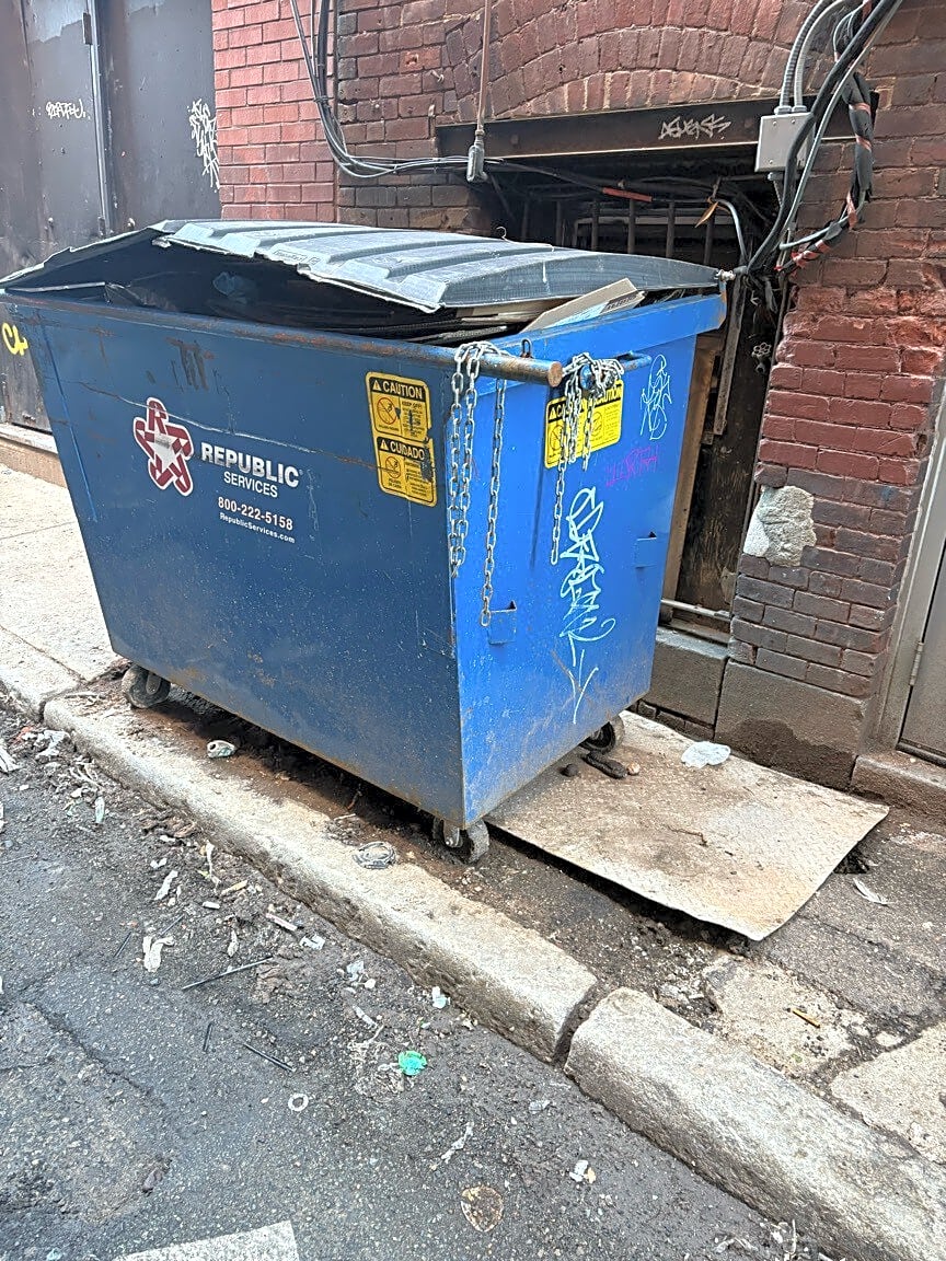 64 Brunswick St, Dorchester, Ma, 02121Blue recycling bins full of trash over flow for years now behind 64 Brunswick st dumpster. Mattresses at 383 and 387 Blue hill ave on sidewalk on Brunswick st in front of church and behind 383 Blue hill ave building and one on city lot at Intervale . All lot in this area are full of trash. Thank you