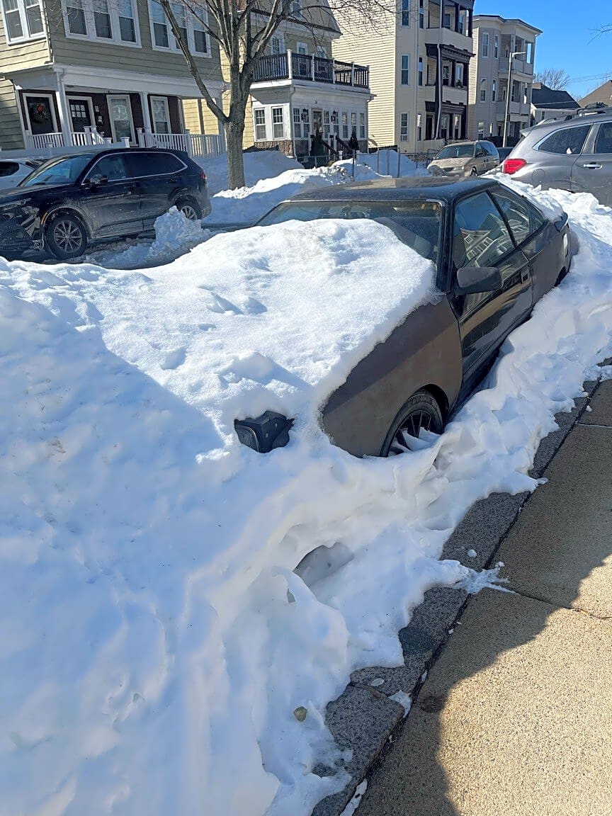 Abandoned vehicle in front of 27 Brookview St. Black Toyota Celica has been parked there for at least three months and is still covered in snow. Owner and resident of 27 Brookview St is 97 years old and has frequent visitors from nurses, social workers, pca’s and family who cannot park in front of the house. Owner of the Toyota has his own driveway and several other cars parked on the street.