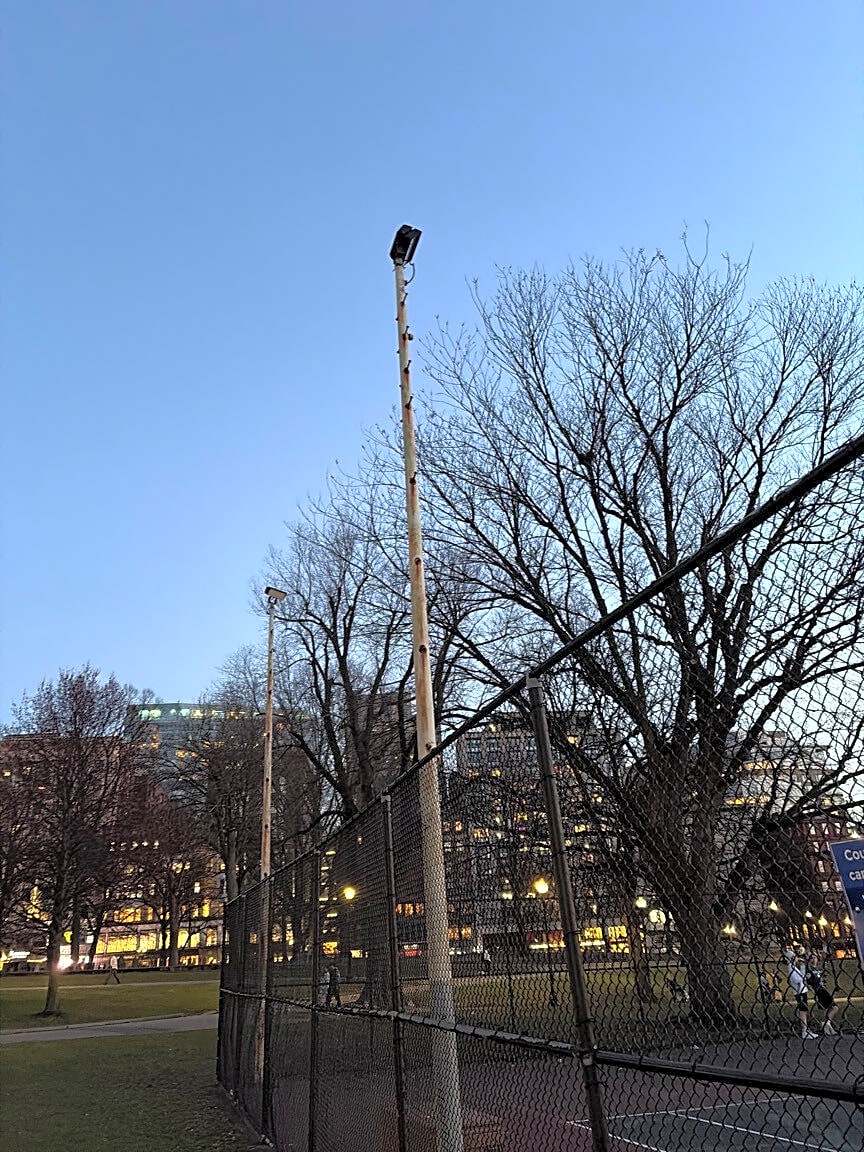 Boylston Pl & Boylston StLights illuminating the tennis court in the Boston Common are not working