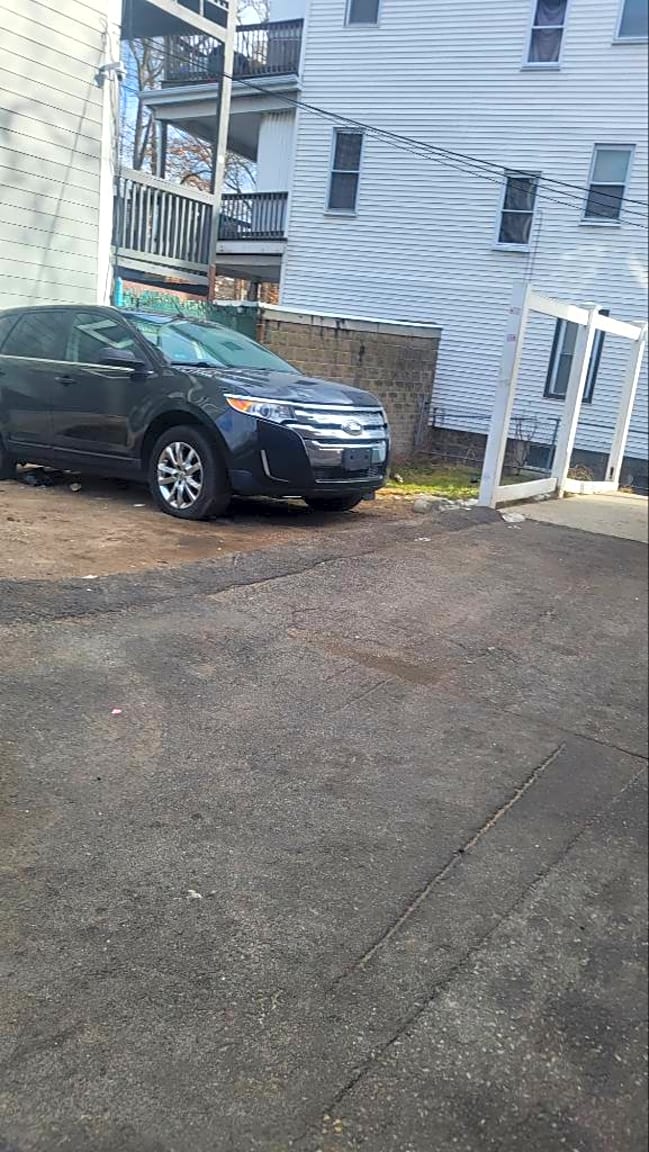 17 Burrell St, Unit 1, Roxbury, Ma, 02119Blue honda pilot parked in front yard | License Plate Info: [5TYC33] Exact location: [Front yard]