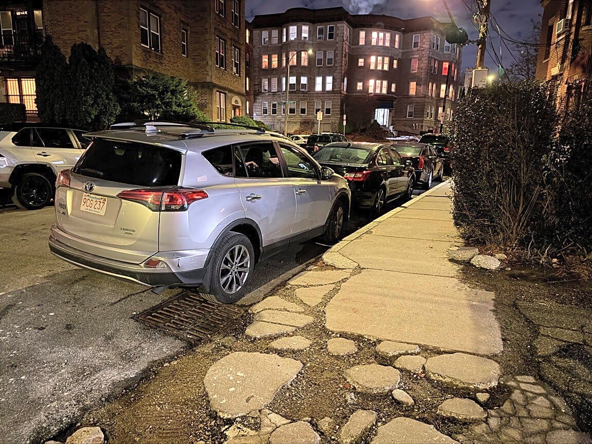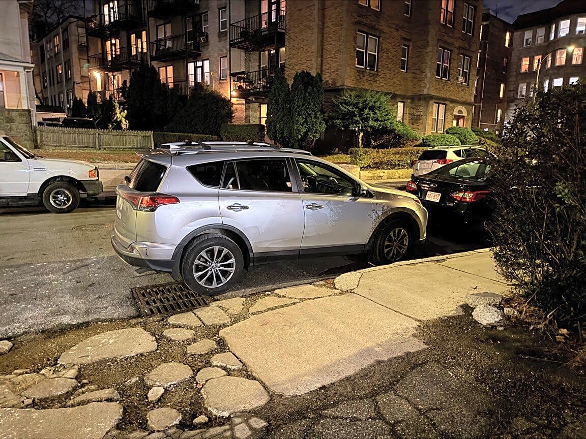 133 135 Chiswick Rd, Brighton, Ma, 02135Car is parked so far past the curb into the driveway, making it difficult to exit the driveway.
