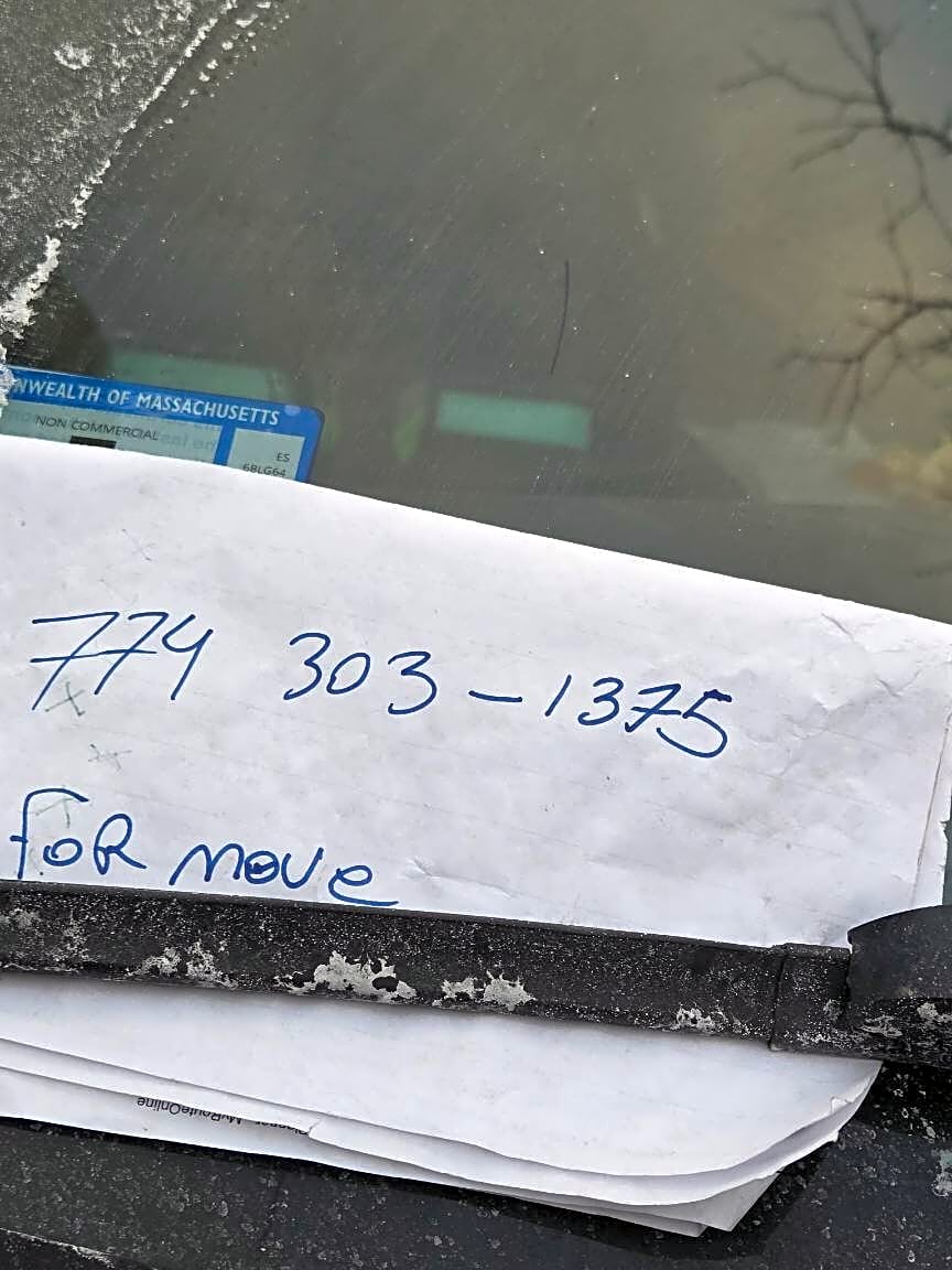 52 Everton St, Dorchester, Ma, 02121That car was parked in the parking lot that I cleaned. He removed whatever was there to park, and there was no other parking available in the surrounding area.