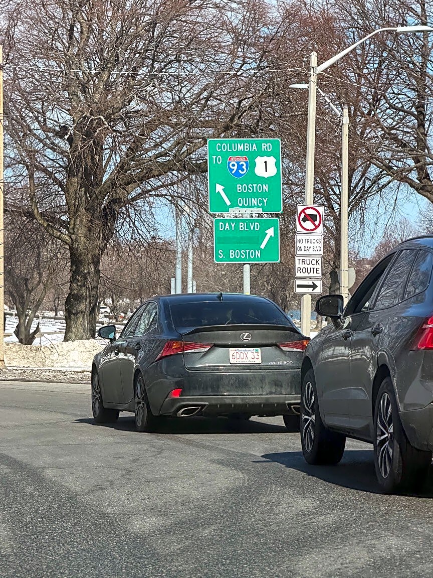 Intersection Of Thaddeus Kosciuszko Cir And William T Morrissey Blvd, South Boston, MaThis car was throwing trash out their window at the old colony rotary