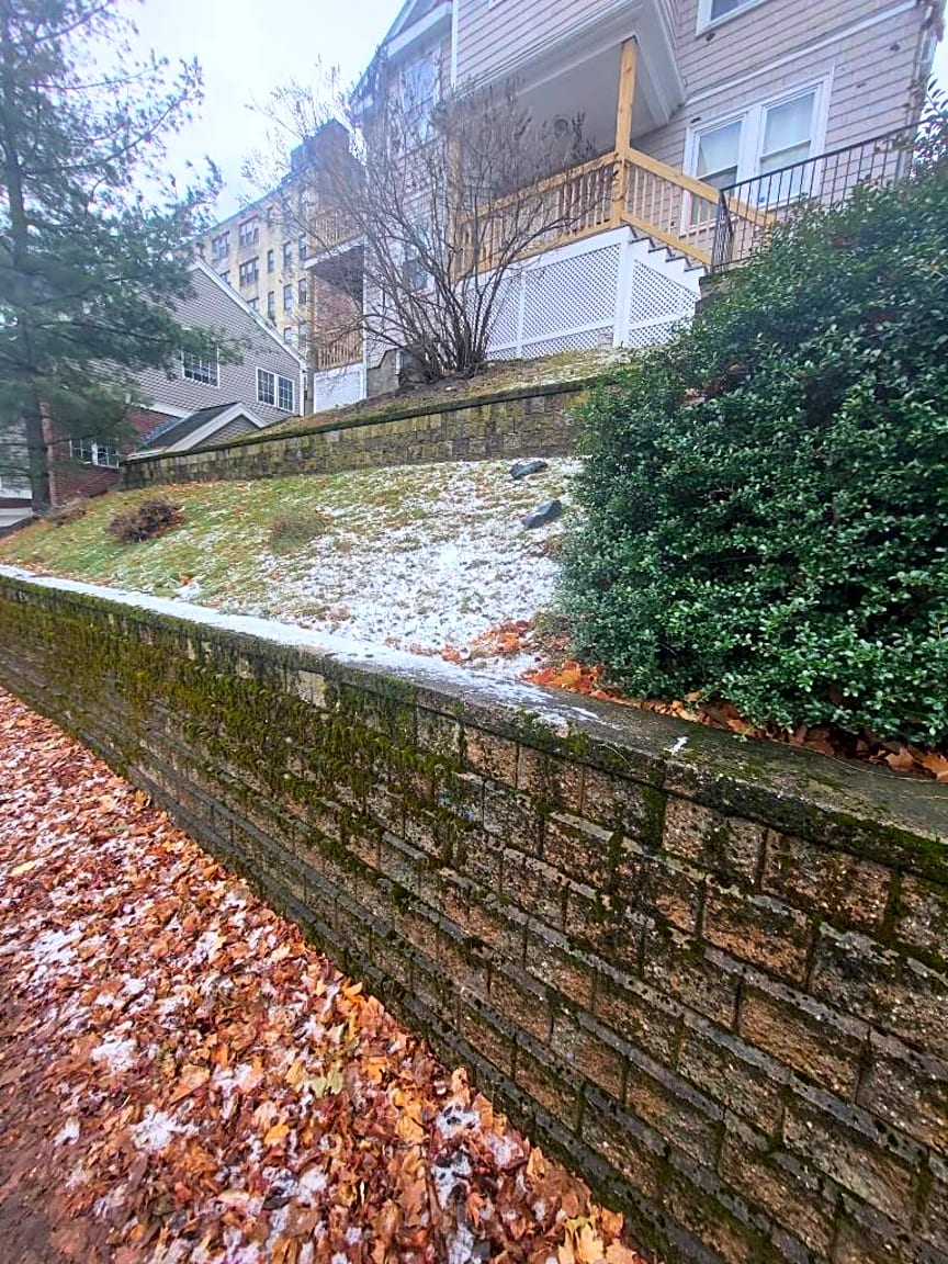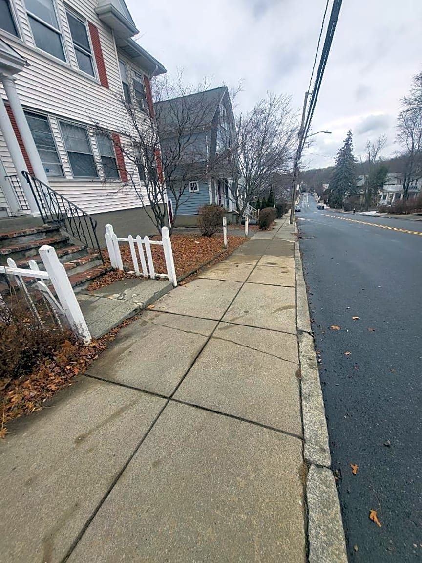 303 Foster St, Brighton, Ma, 02135Loose trash and debris in front of house on gras and in hedges