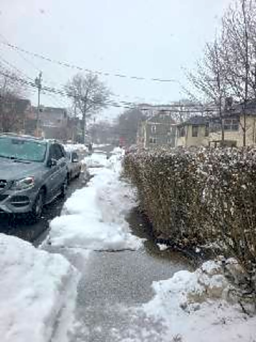 2 A Maynard St, Roslindale, Ma, 02131Sidewalk still not shoveled. Why should we have to walk in the street?