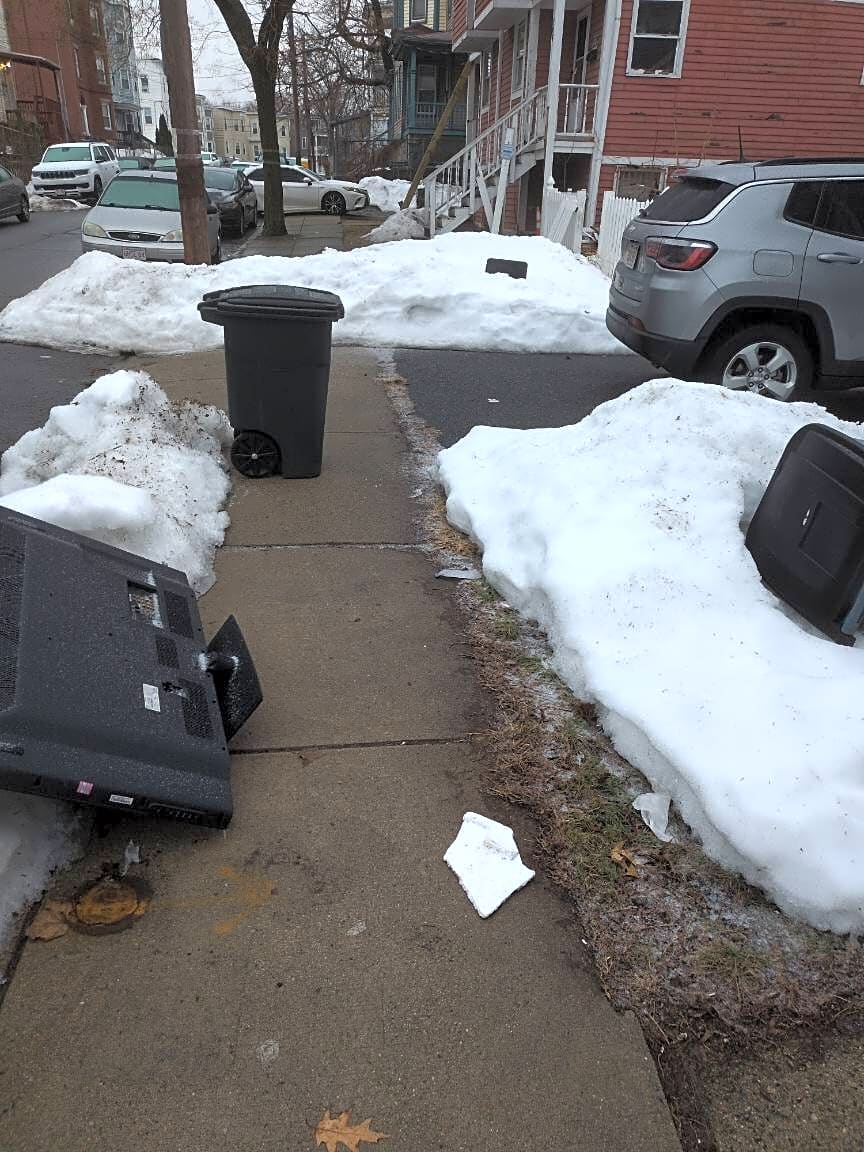 3 School St, Dorchester, Ma, 02124Rubbish is placed out well in advance of pickup | Details: [Trash barrel(s)] Exact location: [Front of driveway on street]
