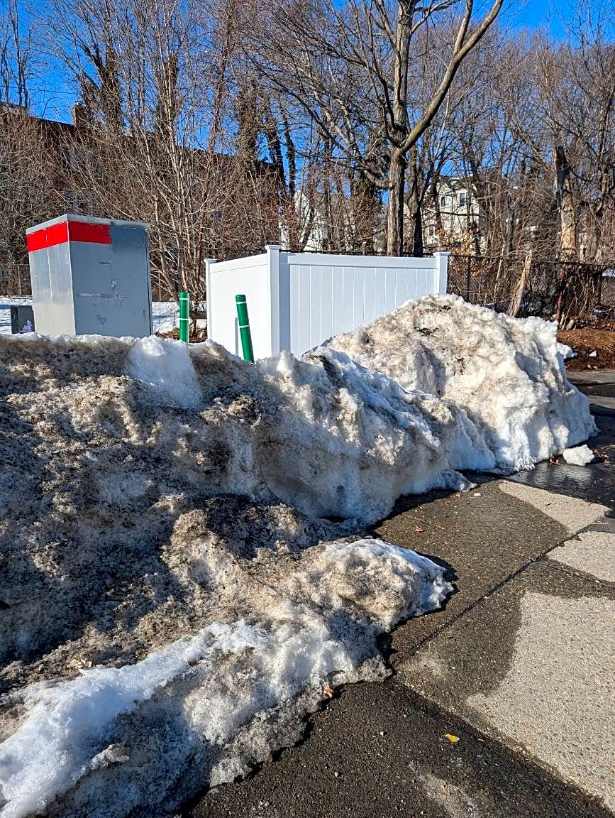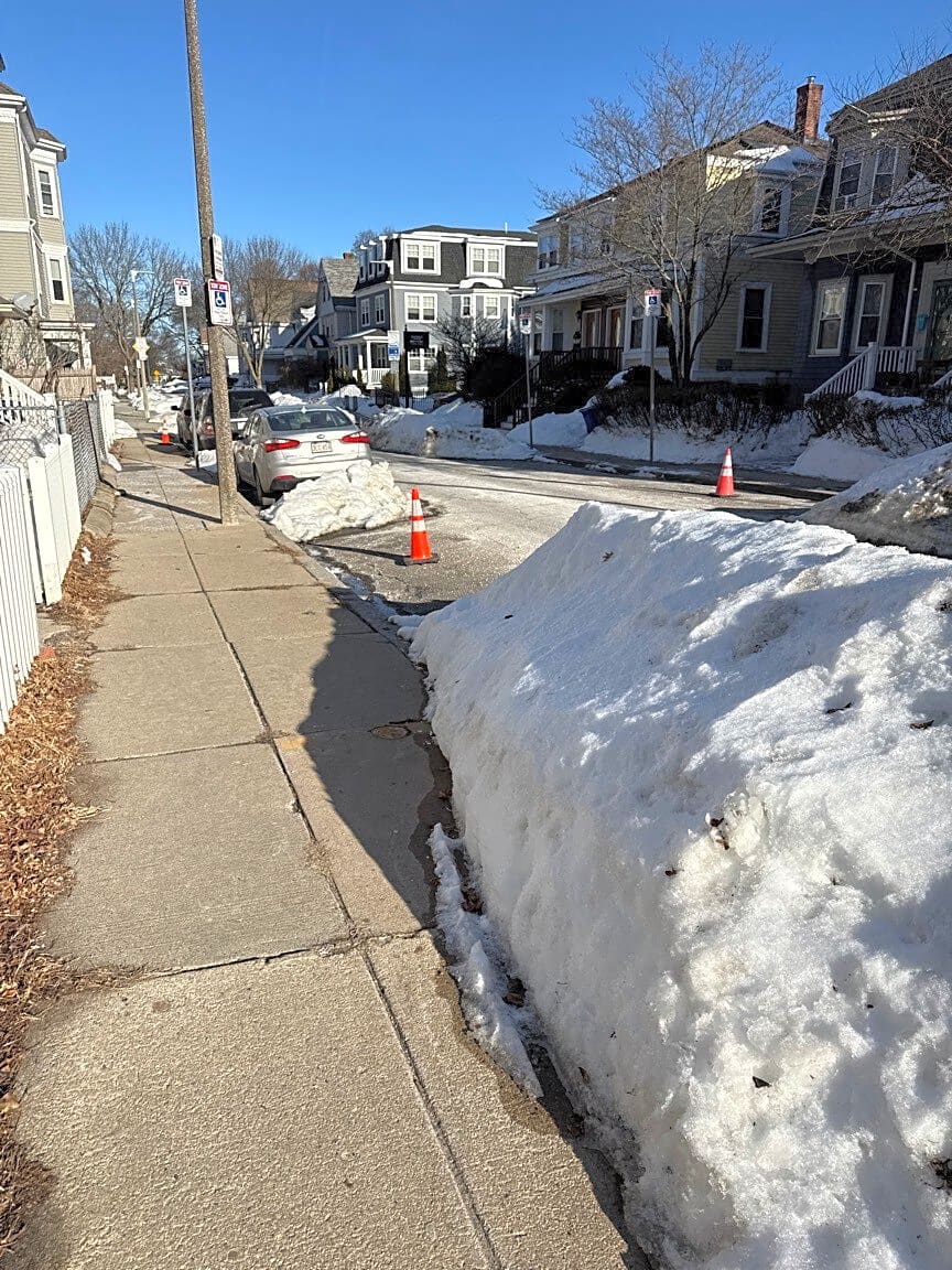 Intersection Of Stonley Rd And Brookley Rd, Jamaica Plain, MaHuge pile of snow on sidewalk