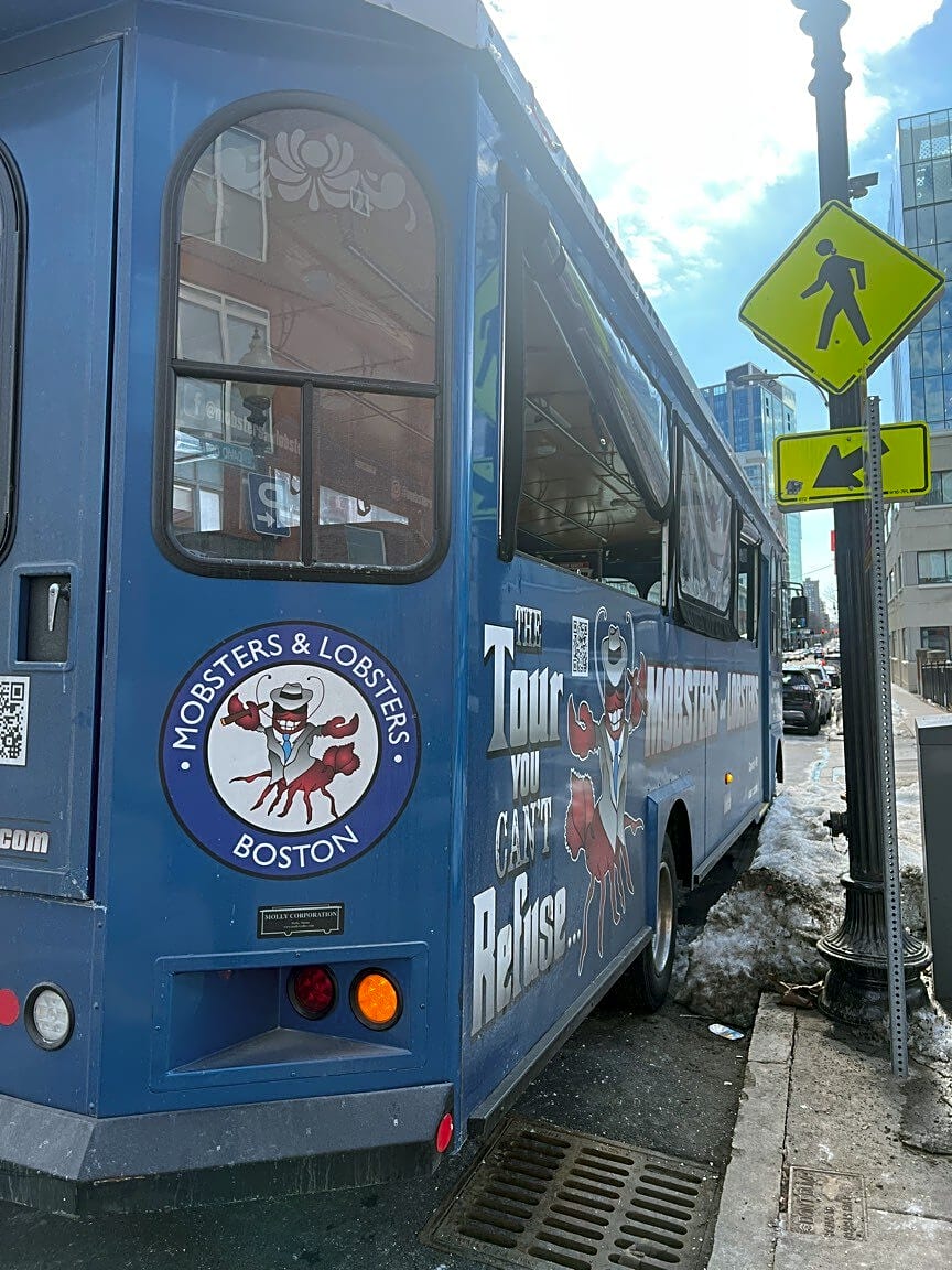 Intersection Of Yawkey Way And Brookline Ave, Boston, MaTour bus sitting and blocking the MBTA bus stop at Brookline ave and Jersey st