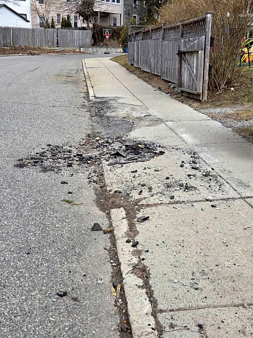 10 Orange St, Roslindale, Ma, 02131Street cleanup needed, road and sidewalk, from plowing/asphalt debris