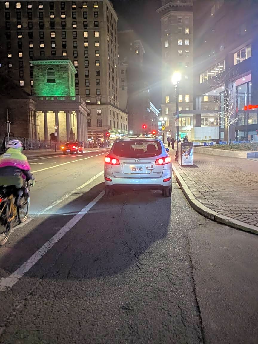 Intersection Of State St And Commercial St, Boston, MaParked in bike lane.