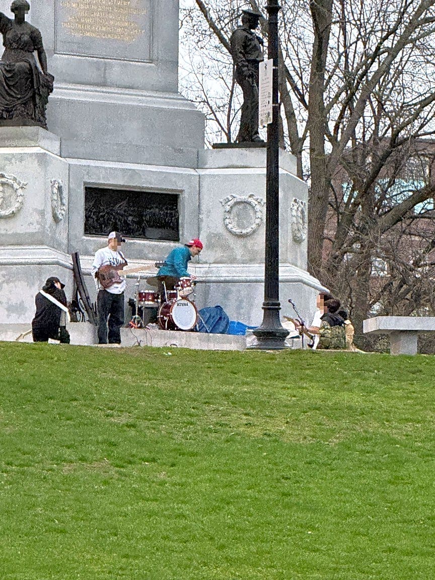 38 Beacon St, Boston, Ma, 02108Public nuisance. The parks department and the police really need to do something about this increasing problem of kids dragging entire sound systems and drum kits into the park, disturbing everyone.
