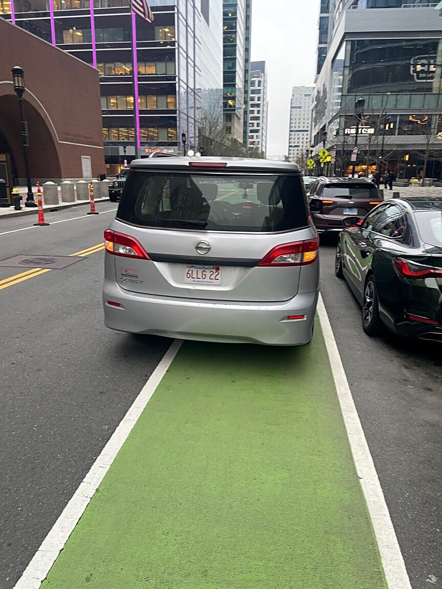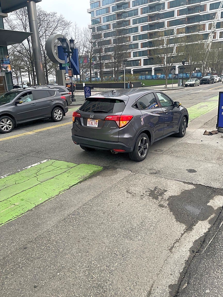 Intersection Of Fan Pier Blvd And Northern Ave, Boston, MaParked in bike lane.