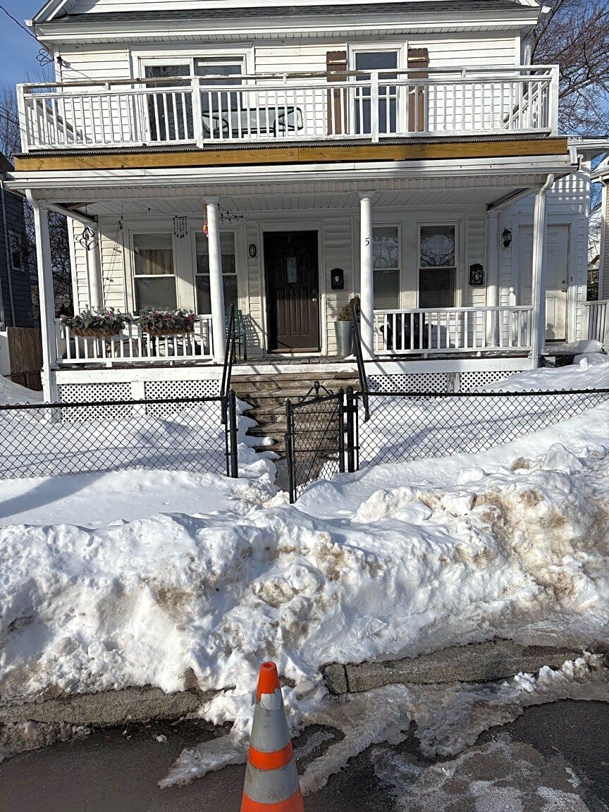 50 Thatcher St, Hyde Park, Ma, 02136const stated that it has been unshoveled for a while and the owner might not live at the property | Unshovelled location: [Sidewalk] City Owned: [No]