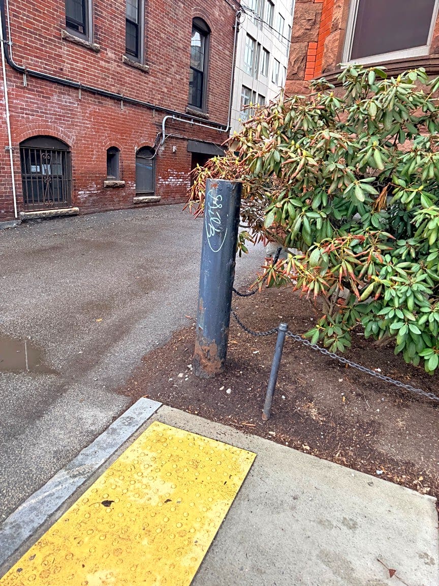 544 P Massachusetts Ave, Roxbury, Ma, 02118Needle. With back to Mass Ave and facing the fountain. It is behind the first and second bench on the left. Thank you!