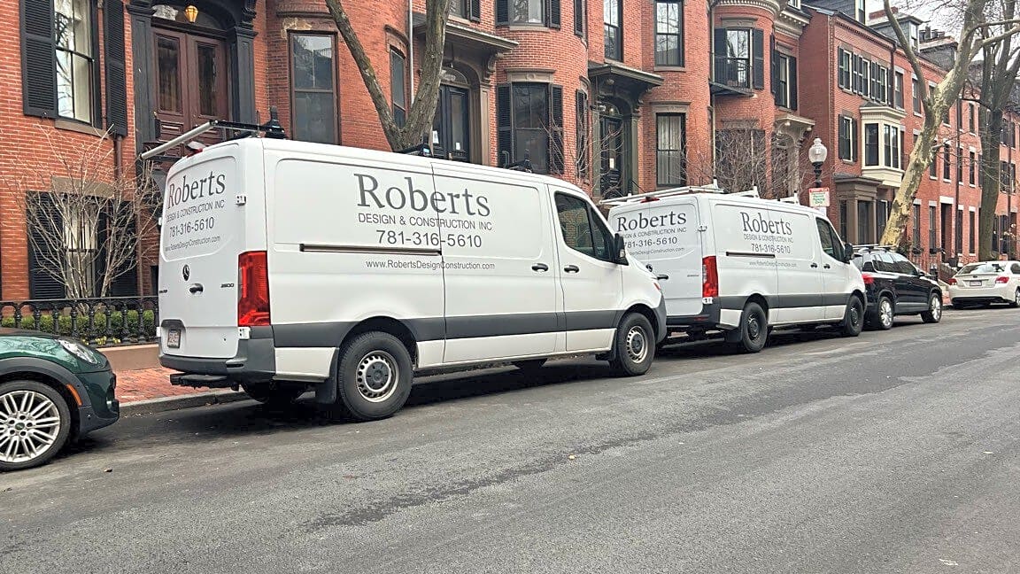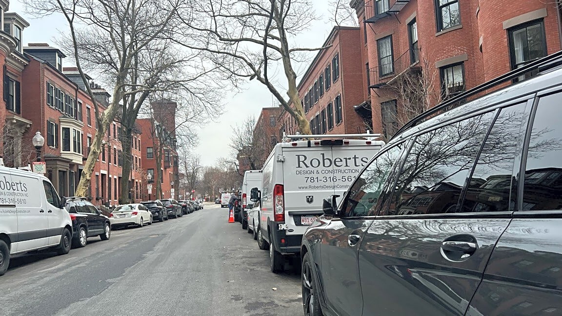 178 W Brookline St, Roxbury, Ma, 02118multiple services trucks parked on our street illegally doing an install. 3 of them have the name Roberts Design and then there are 2 others without signage