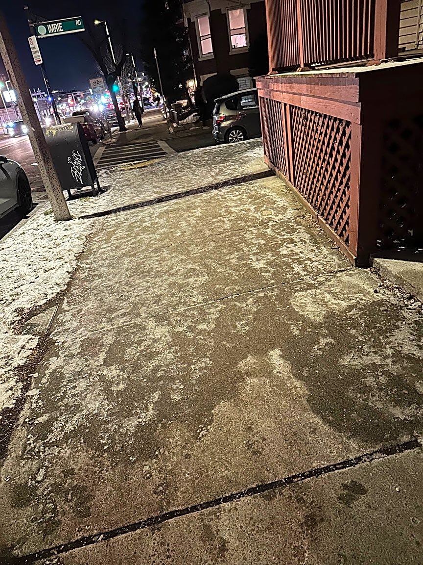 CLOSED #101006438685Noted. Street salted. BPW does not shovel sidewalks or parking spots.