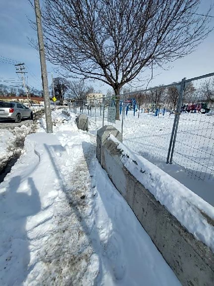 CLOSED #101006487551Resolved. We have nightly snow removal units spread throughout your district. We made it wheelchair accessible, we pushed back the curbline and removed snow so that the students and staff can travel on without injury. Thank you.