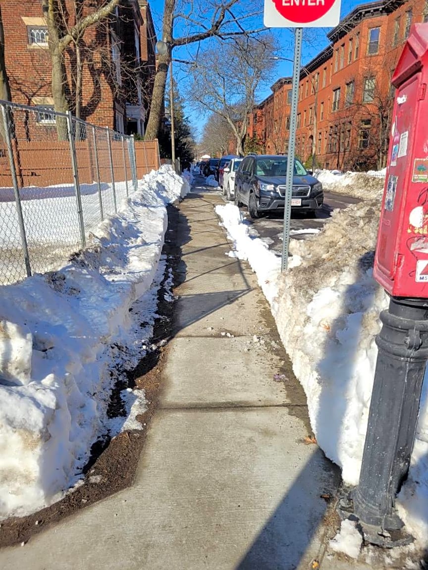 59 Harvard St, Boston, Ma, 02111Sidewalk not shoveled. Over a week since end of near 2 feet of snow