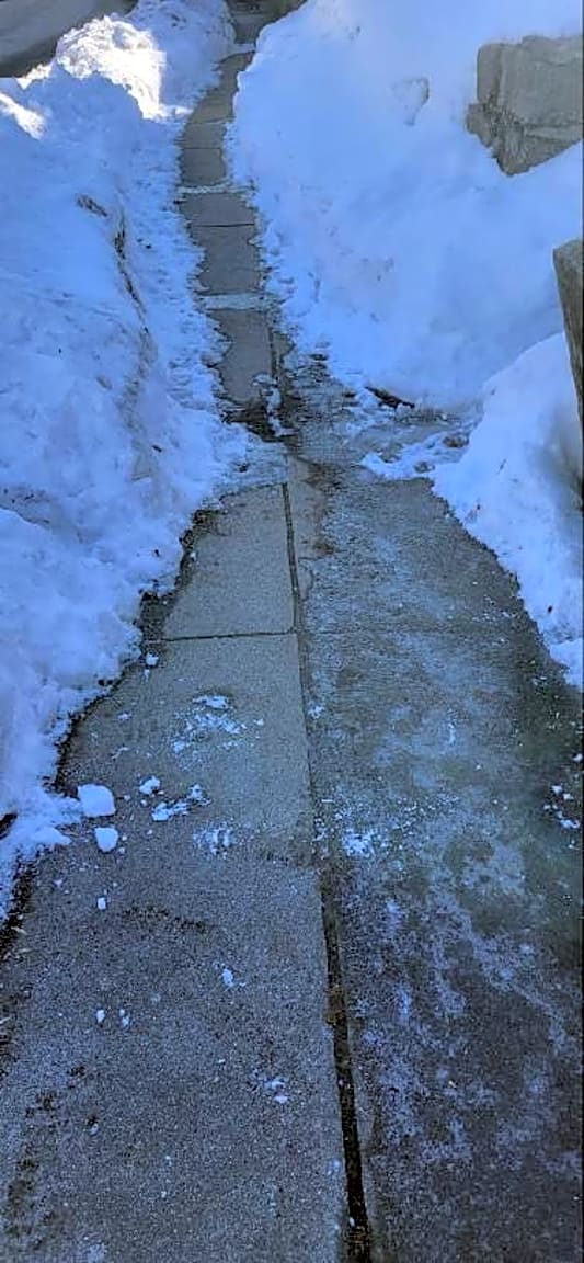 CLOSED #101006504323Resolved. Violation issued for sidewalk not shoveled.