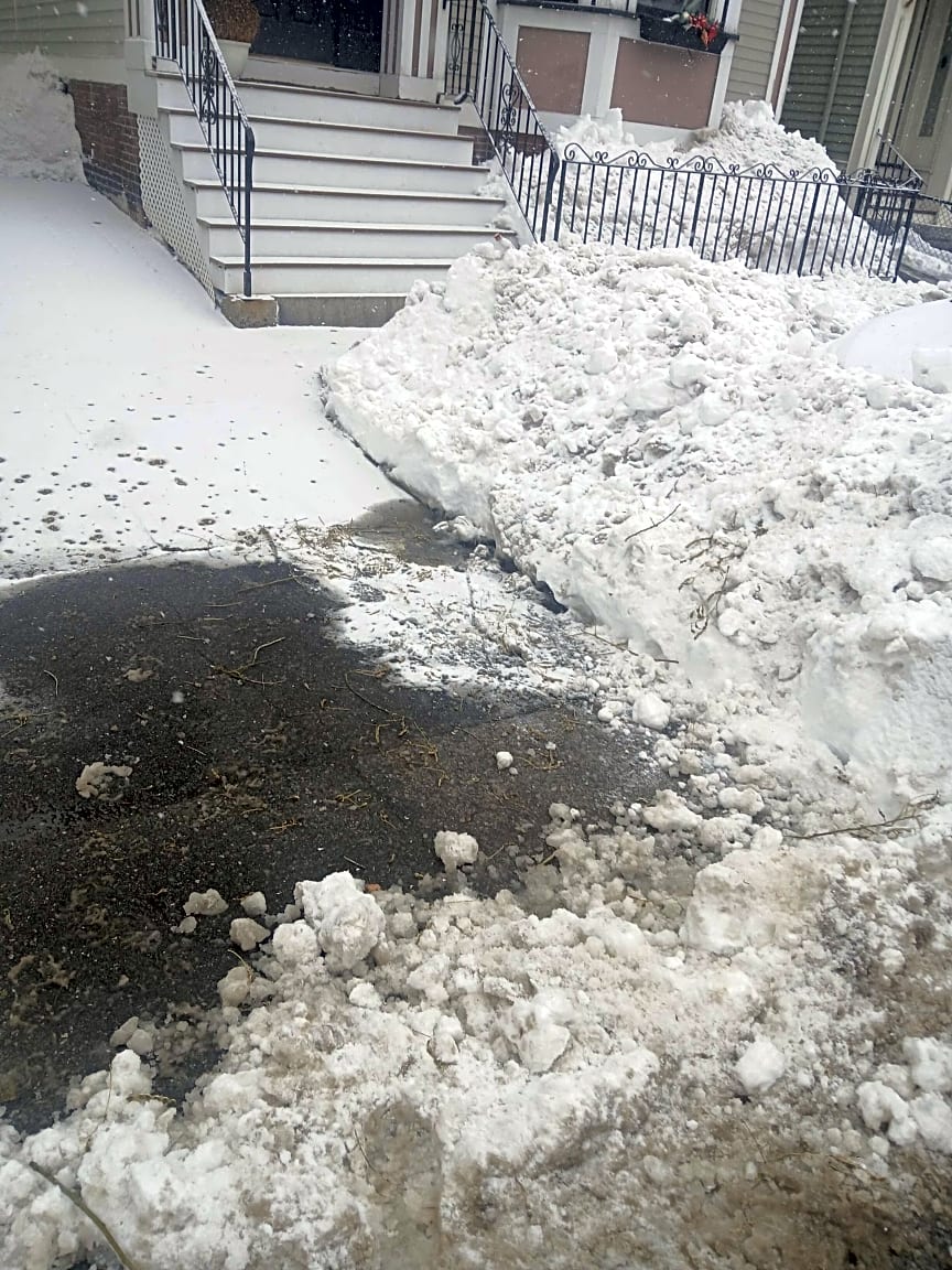 58 Forest St, Roxbury, Ma, 02119After I cleaned the sidewalk, people piled snow in front of our driveway, partially blocking it. Is that something that can/will be plowed, or is it my responsibility? Thank you