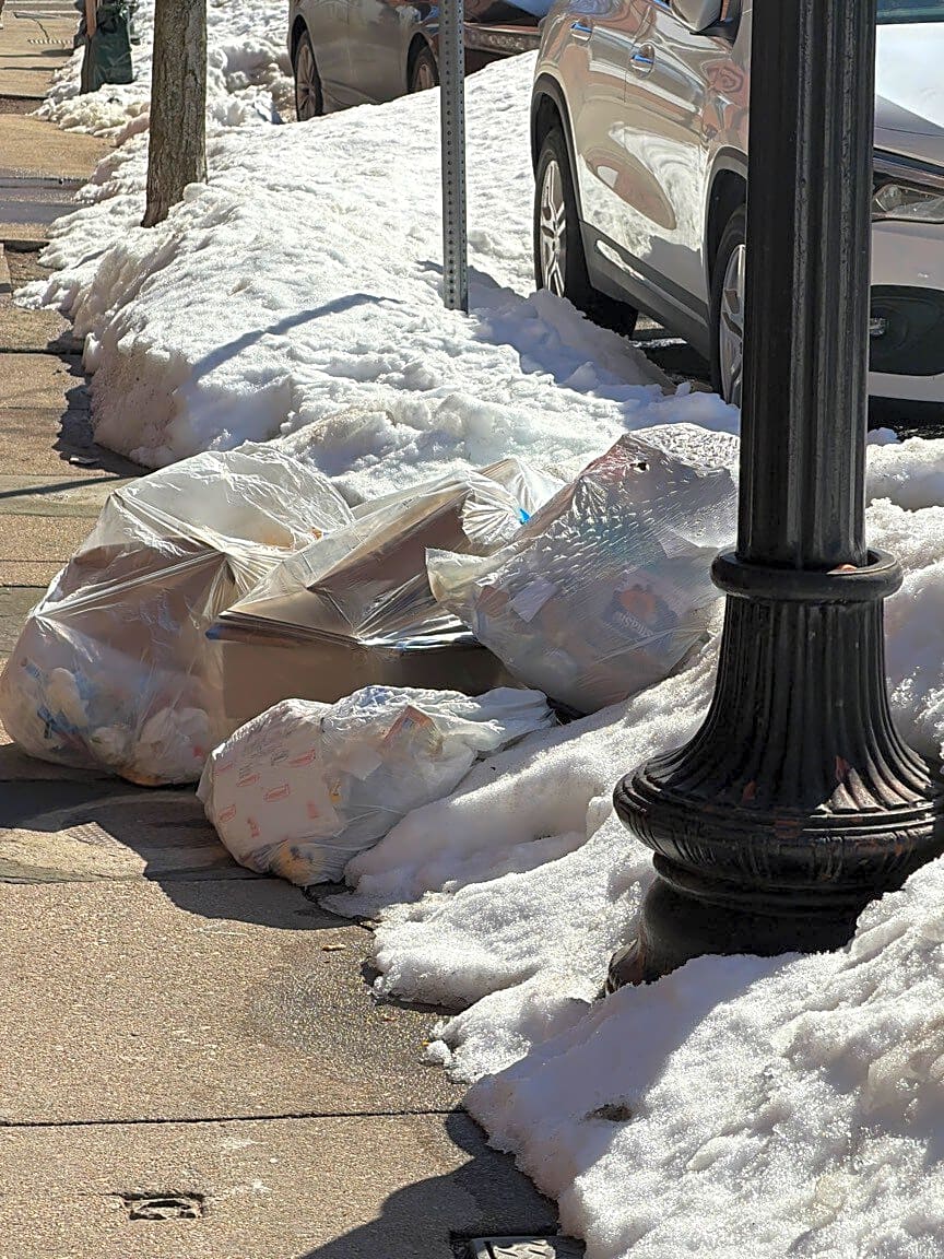 5 Braddock Park, Boston, Ma, 02116Trash was not picked up yesterday. Piled up behind the snow pile.