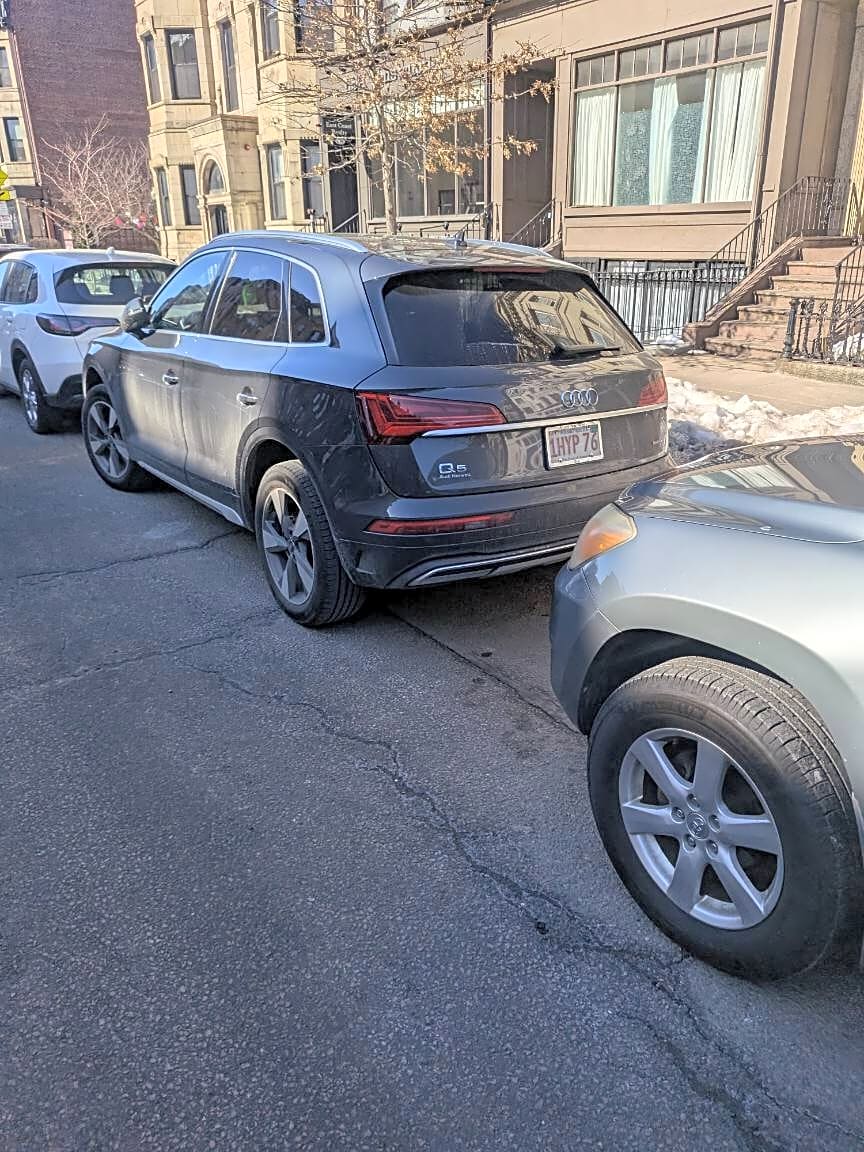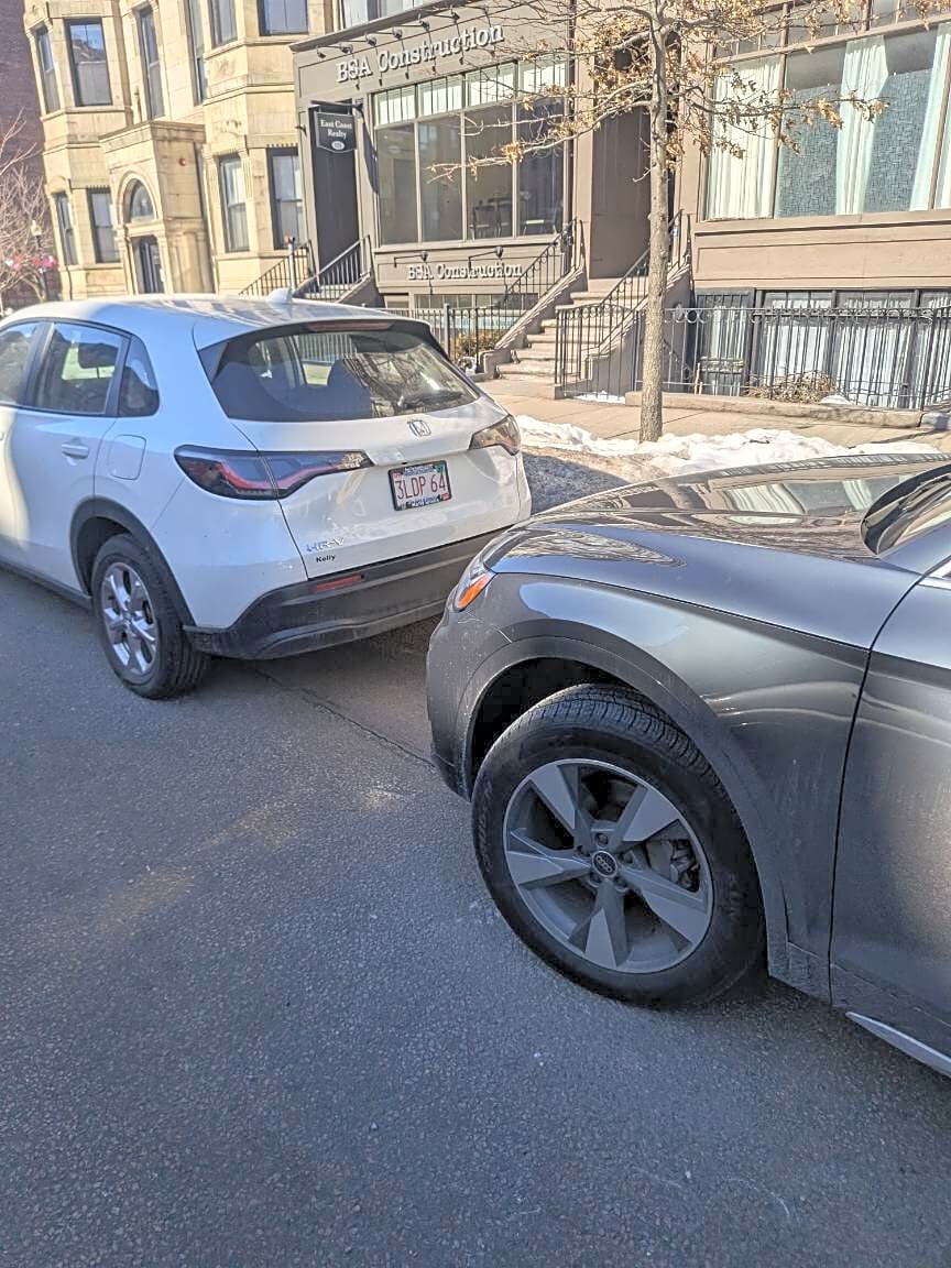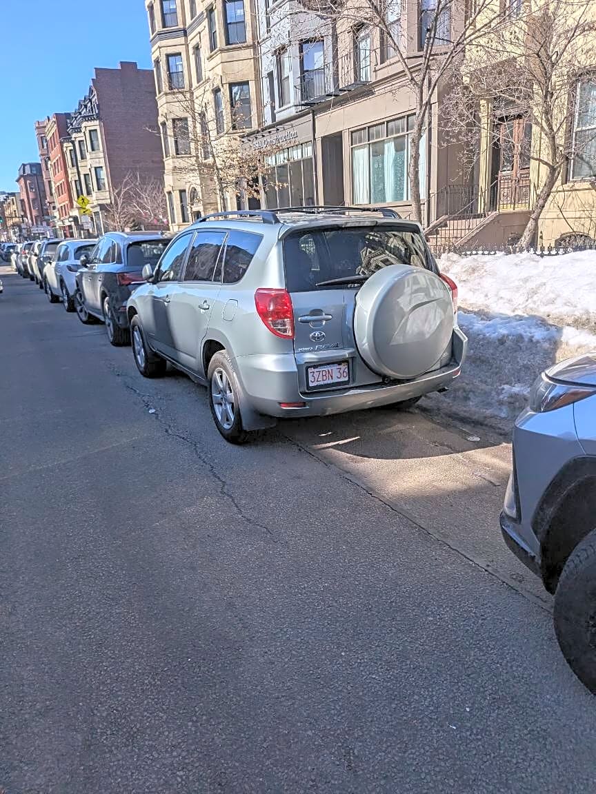 Intersection Of Claremont Park And Columbus Ave And Worcester St, Roxbury, MaVehicle parked in bike lane instead of digging out a parking space.