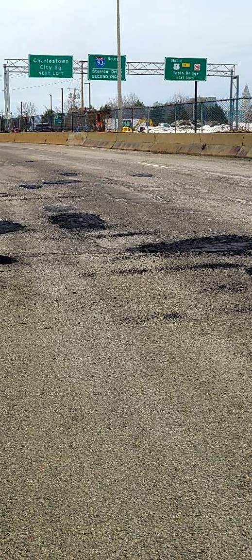 Intersection Of Lynde St And New Rutherford Ave, Charlestown, MaHello. I hit two not one potholes in a row on Rutherford Ave in Boston , under the overpass near Bunkerhill Community College. This happened last night, March 5, 2025 at about a little after ten p.m. My front tire blew out and luckily a state trooper was right there with another car that had hit the same pot holes and pulled over waiting for a tow. The state trooper had told me that the State Police has been contacting the City of Boston for days regarding those pot holes. I am writing to report these pot holes, which I know have been reporting already by the Mass State Police themselves and I am sure from others who have hit both consecutive pot holes. They are very dangerous since it is a busy road and basically under an over pass. There is no way I could go back this morning and take a picture of the two potholes due to my safety of where the two potholes exist. I would love and appreciate someone to get back to me about this issue and talk about this issue with me. Thank you very much. Elaine Dell'Orfano 617-413-9648