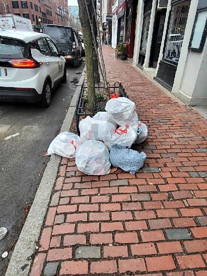 52 Charles St, Boston, Ma, 02114CLOSED #101006576884Noted. Several bags of trash placed out after collections on the sidewalk infront of the property, evidence was found and a citation was issued and sent to dpw for removal!
